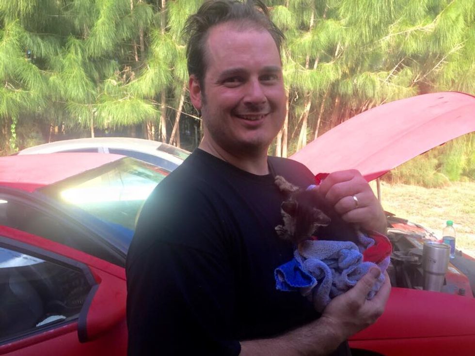 Within a few minutes, Ron and Valerie Spada of Spada's Total Auto Repair rushed to the rescue. "They were so distraught over the thought of losing him," Spada told Love Meow.