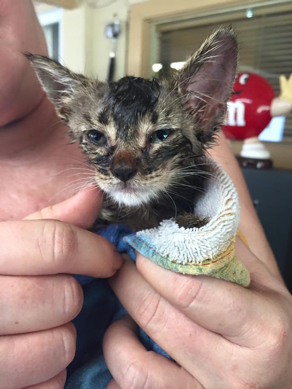 They decided to close up their business early so they could respond to save the kitten's life. "Denise was just overwhelmed with fear for the little guy. We were sent a message from a friend asking us if we could help them in any way. We had to help," Spada told Love Meow.