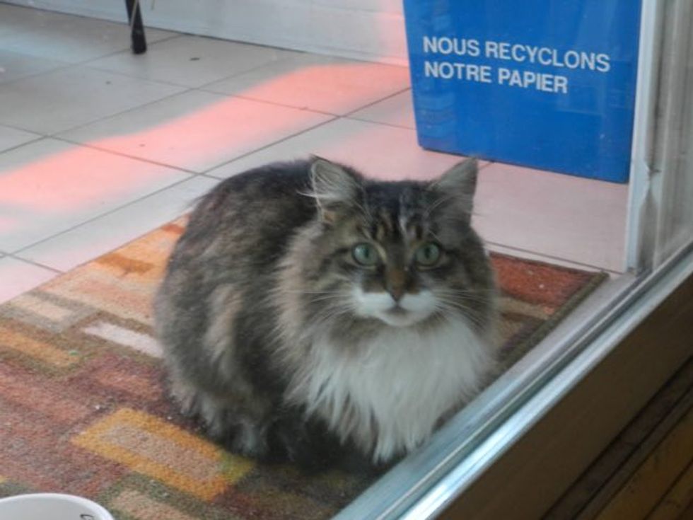 It was freezing cold with windchill in Montreal and this mom cat and her kitty really needed a warm shelter, so they went into their solarium to nestle in.