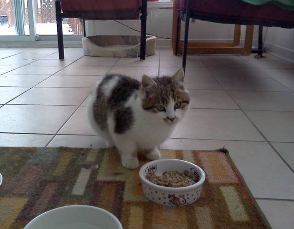 It was freezing cold in Montreal and a feral cat mama and her kitty had taken refuge in a family's solarium.
