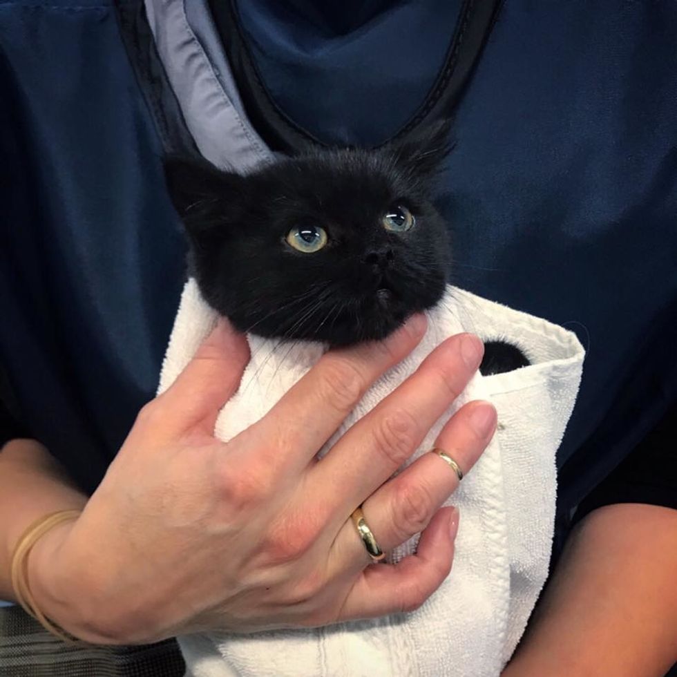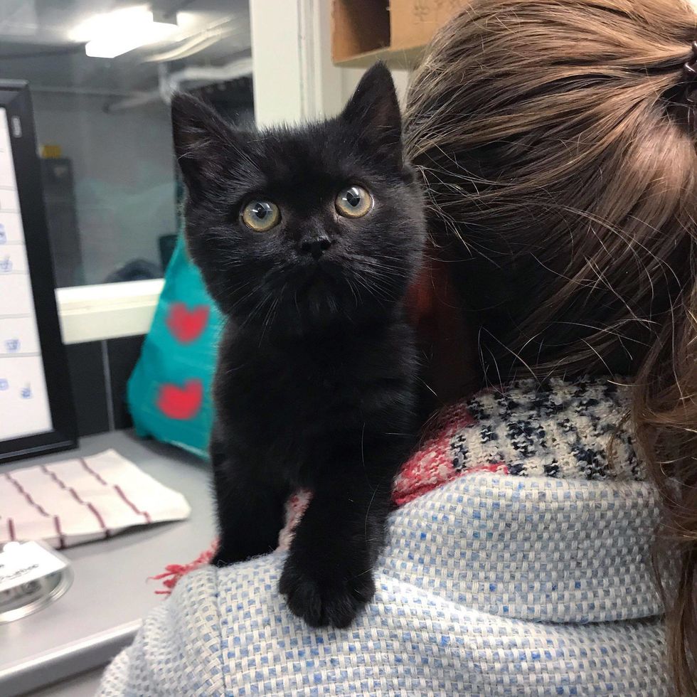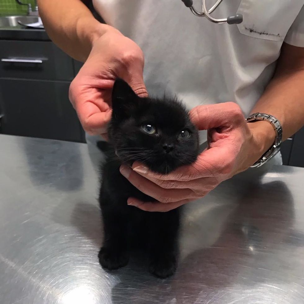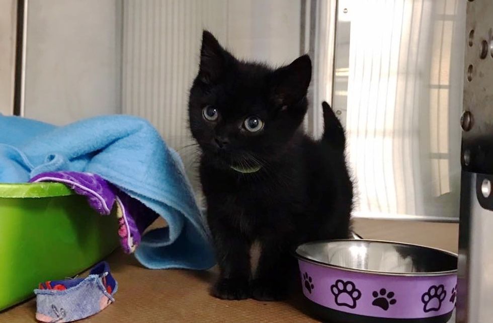 A tiny black kitten was brought to a shelter in Quebec City, Canada a few weeks ago. He was alone and in need of rescue.