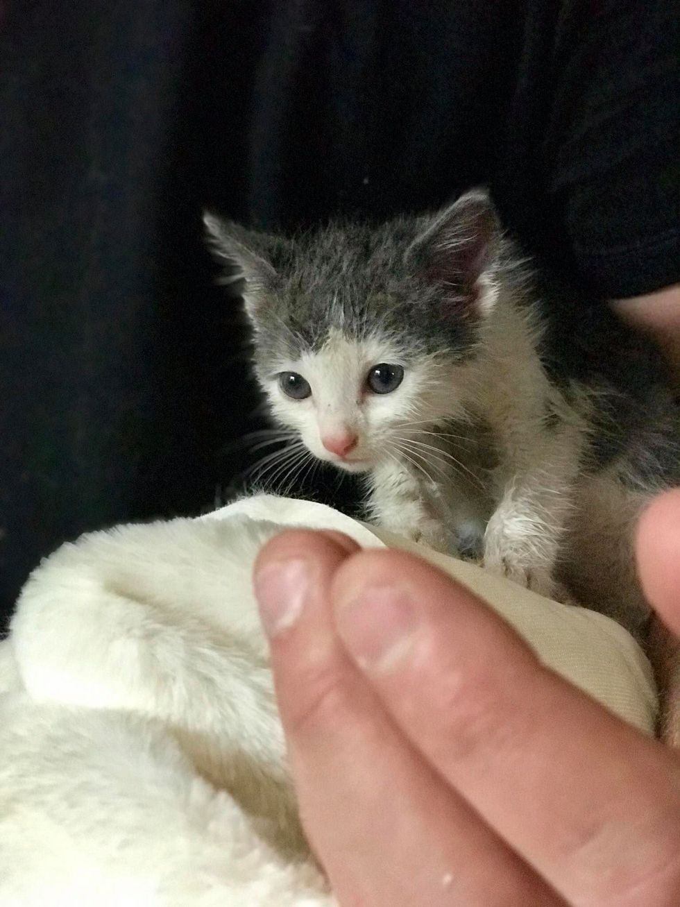 The family happens to be volunteers for Safe Haven Pet Sanctuary (in Green Bay, Wisconsin). They reached out to their rescue group and brought the kitten in for a checkup.