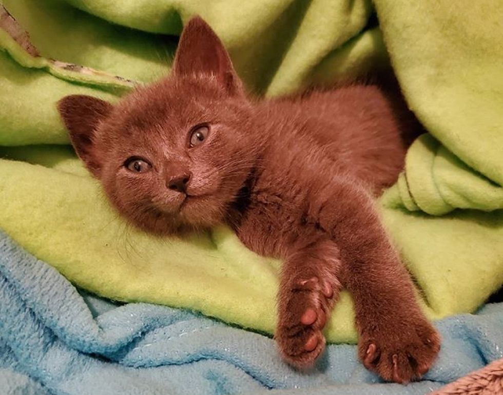 Early this year, a tiny gray kitten was rescued by a Good Samaritan when she found him from an online post. He was all alone and desperately needed rescue.