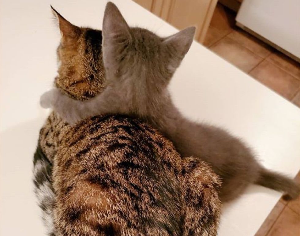 Runty the tabby became Félix's mentor, teaching the youngster how to be a proper cat and letting him wrap his arms around him whenever he wanted.