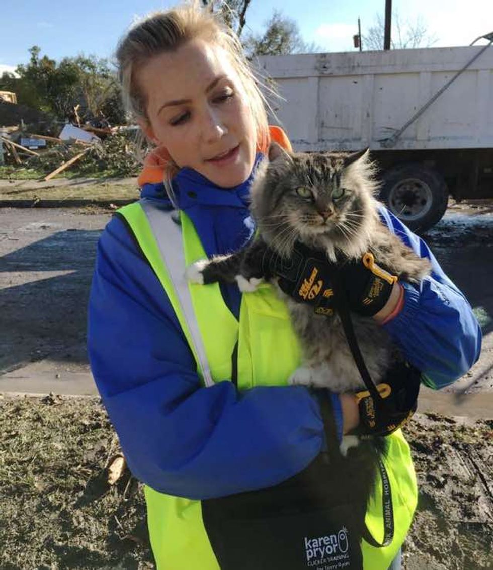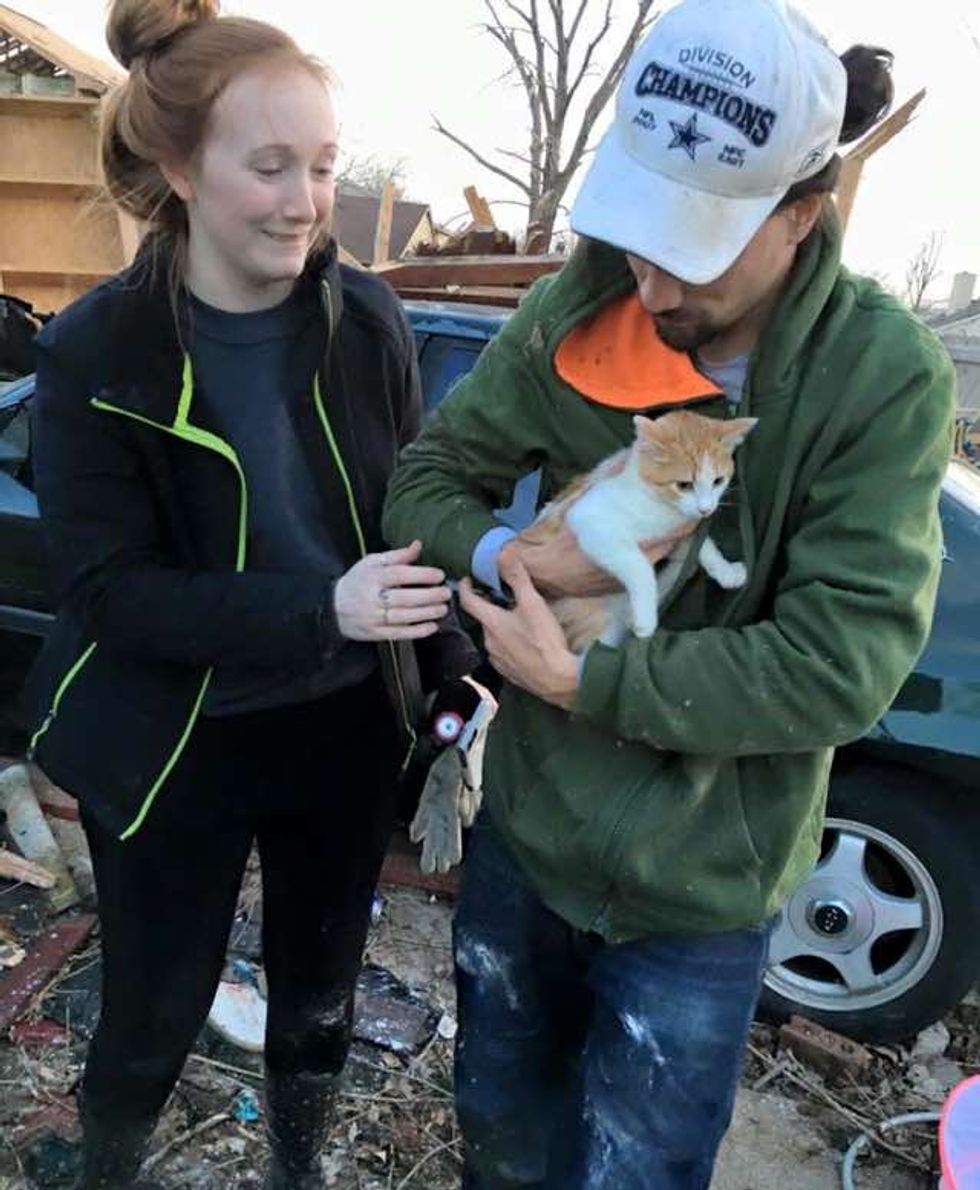 Briana Landrum and her family lost everything from the tornado. "All she cared about was finding her cats, nothing else," Norah D. Meier, a rescue and search volunteer, said.