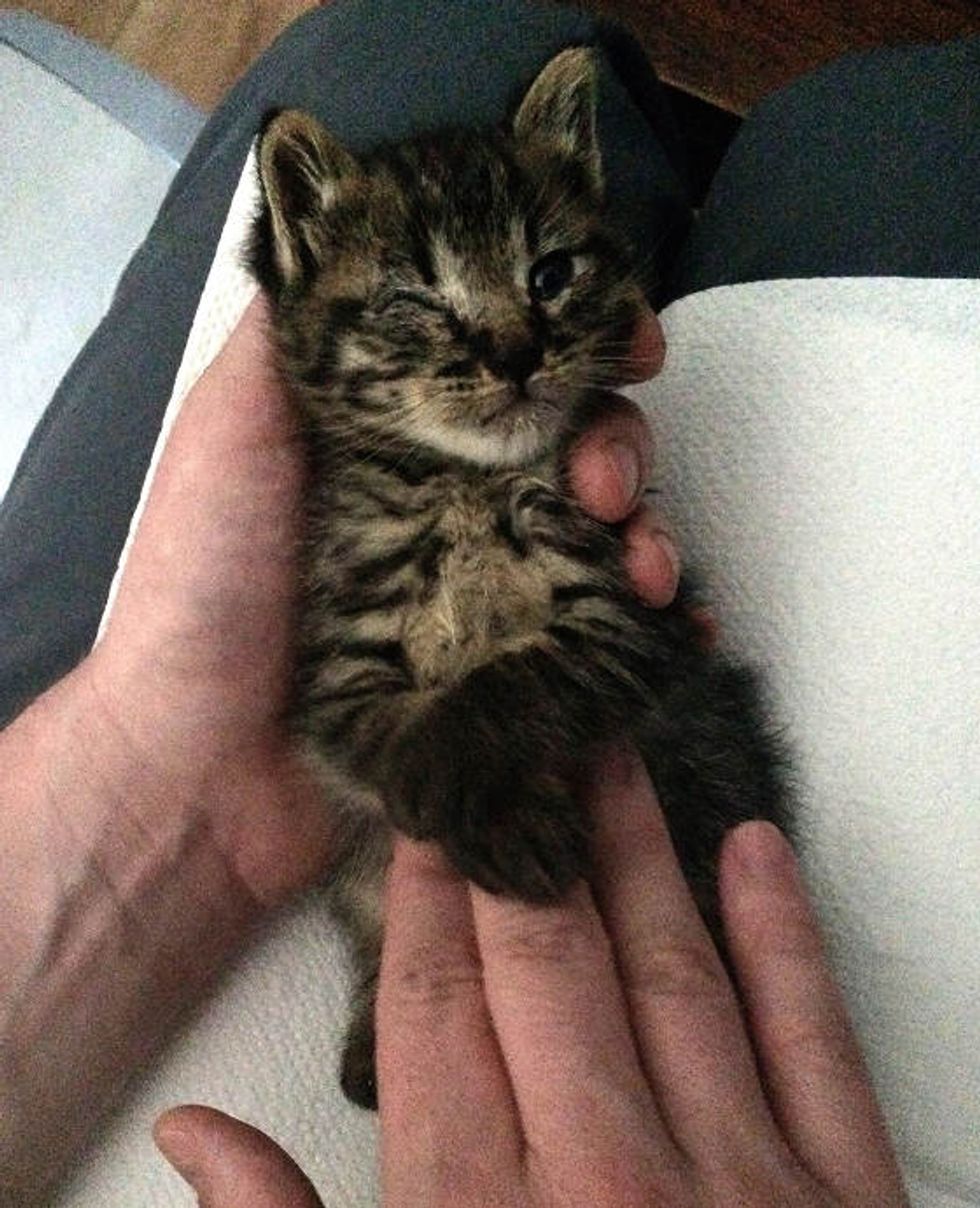 "His eye was closed and one of his back paws was huge, obviously infected. Got him on antibiotics and started feeding him every 3-4 hours."