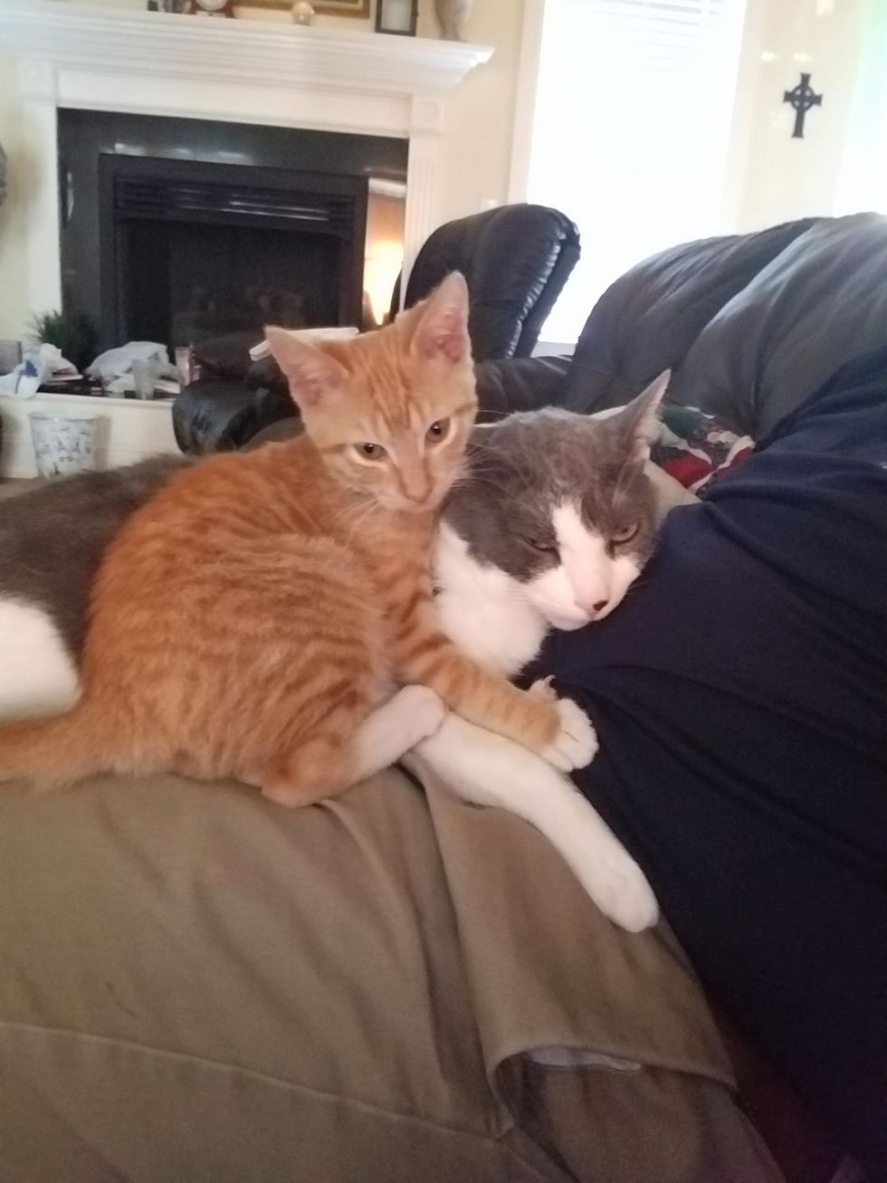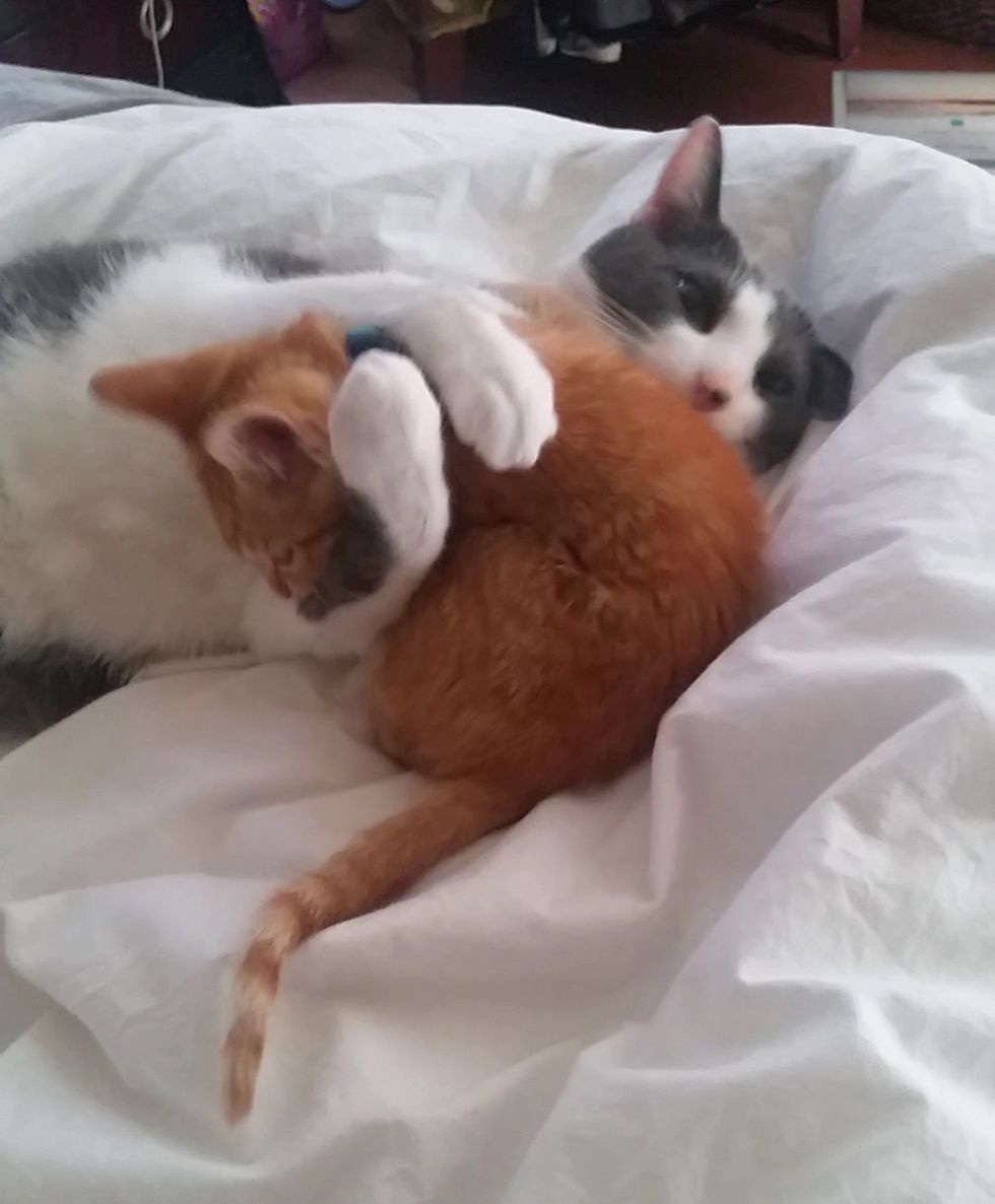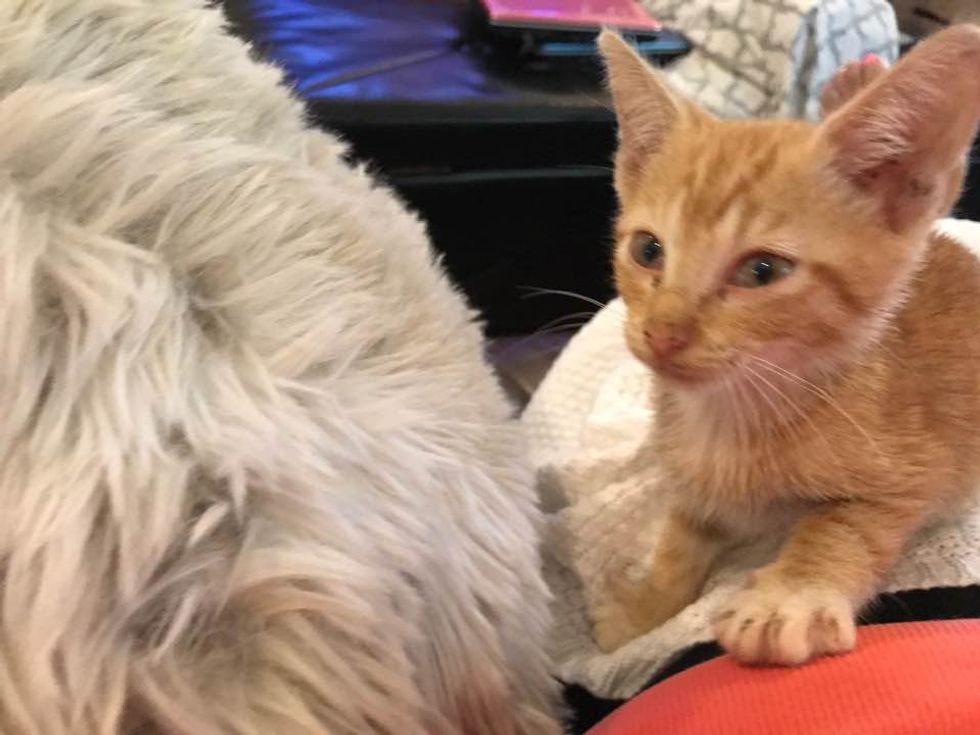 Their family cat Toby, who is also a rescue, has taken to the little kitten.