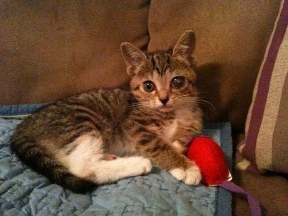 Her right eye healed up nicely, but her left eye couldn't be saved despite weeks of treatment.