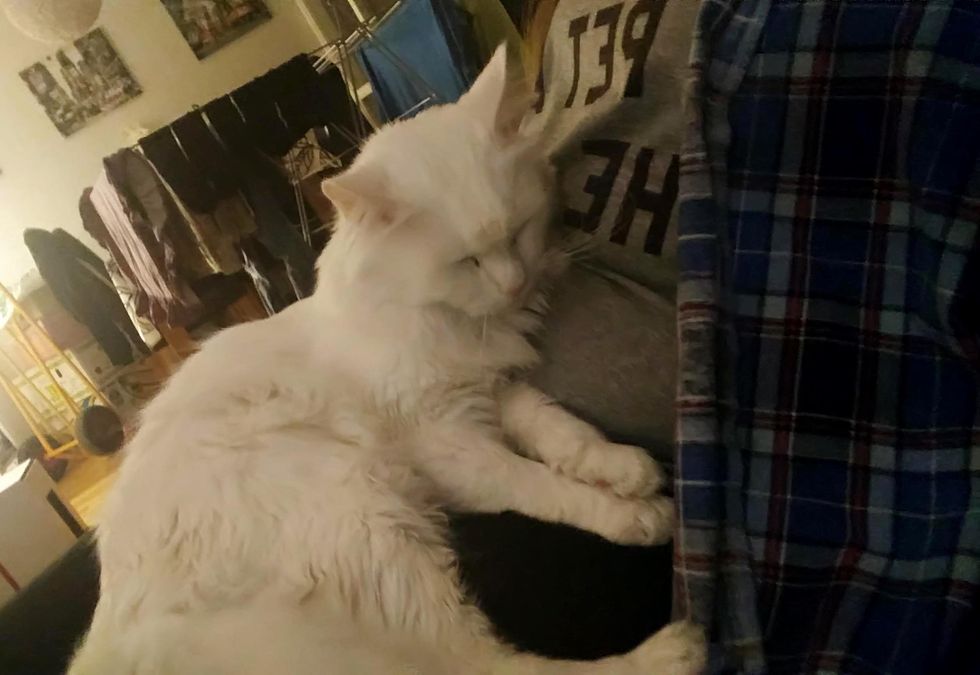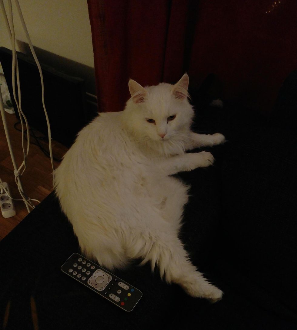 Today Ludde is 5.5 years old, majestic, charming and very fluffy. One of his favorite pastimes is to snuggle between his human's leg and the couch arm wrest.