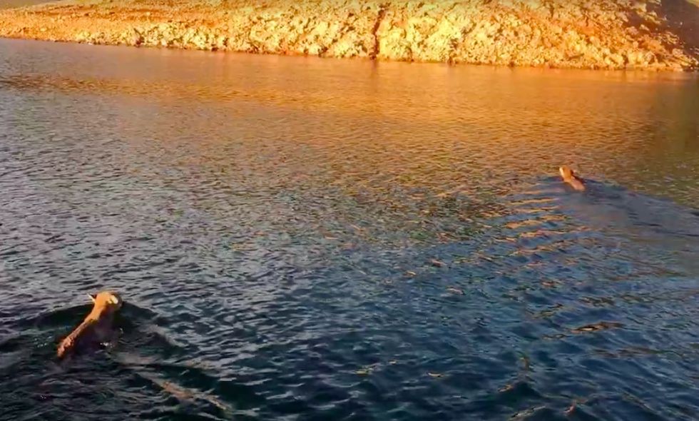 Kevin Alexander and his son Blake spotted two incredible creatures in the water swimming across the lake, and couldn't believe their eyes.