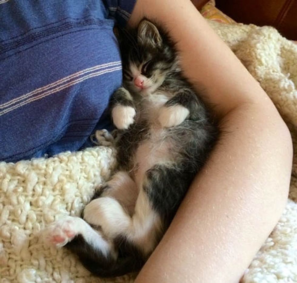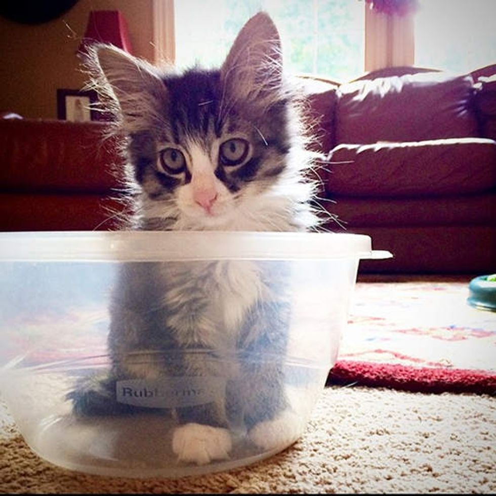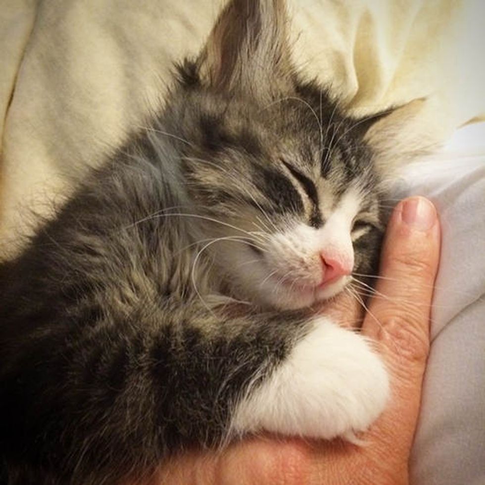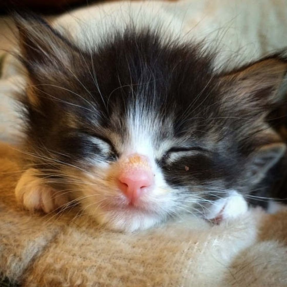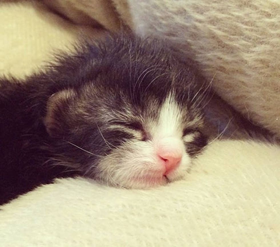 When they picked up Felix, he was one week old. "Little Felix is the smooshiest, crumpliest kitten. He might actually be a liquid. I'm not sure. I'm not a scientist." said the foster mom via instagram.