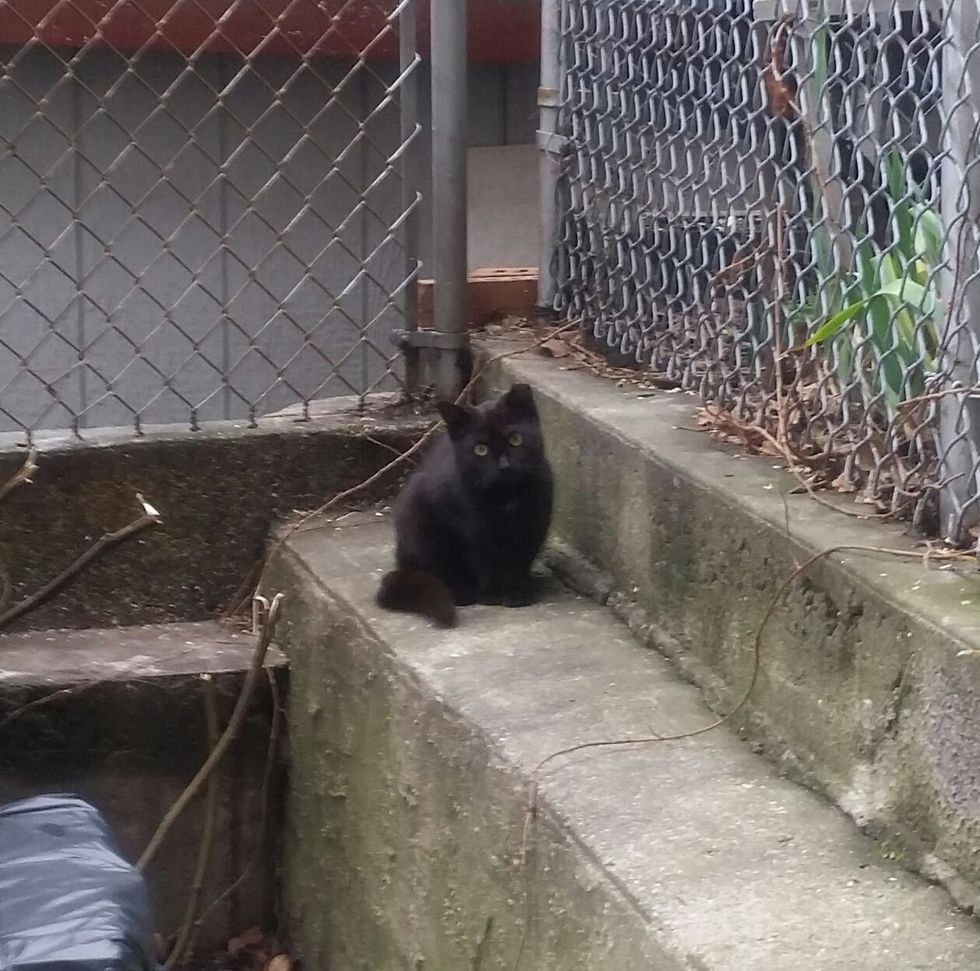 The kitty named Onyx had been taken refuge between the driveway and the roof of a shed next door since she was spotted roaming around the neighborhood of New York City.
