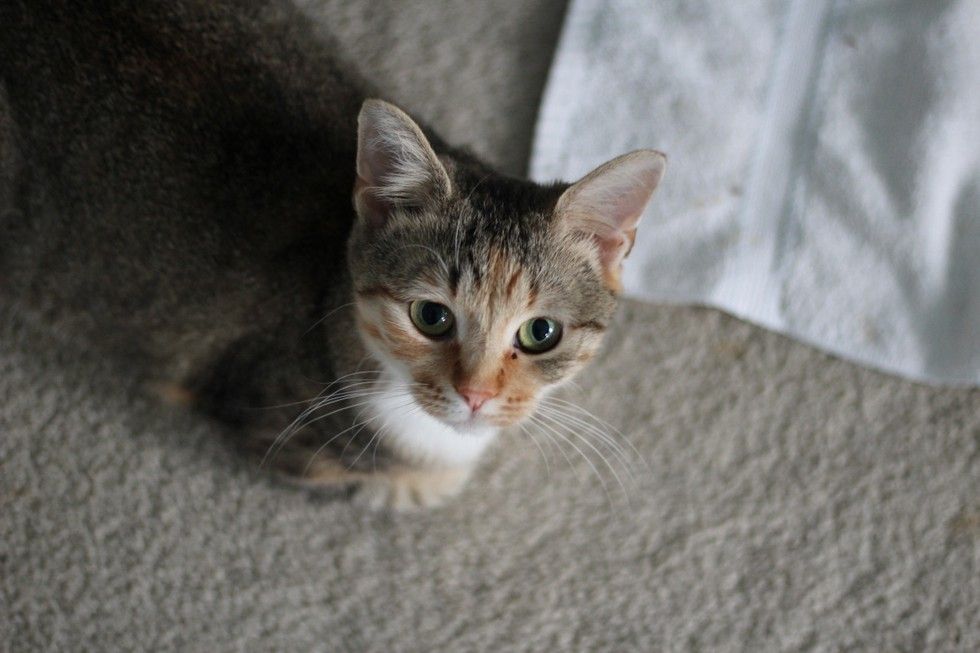 A beautiful calico was found with a pregnant belly by a volunteer from Cat Adoption and Rescue Efforts (C.A.R.E.). The young kitty was very timid and needed a lot of help.