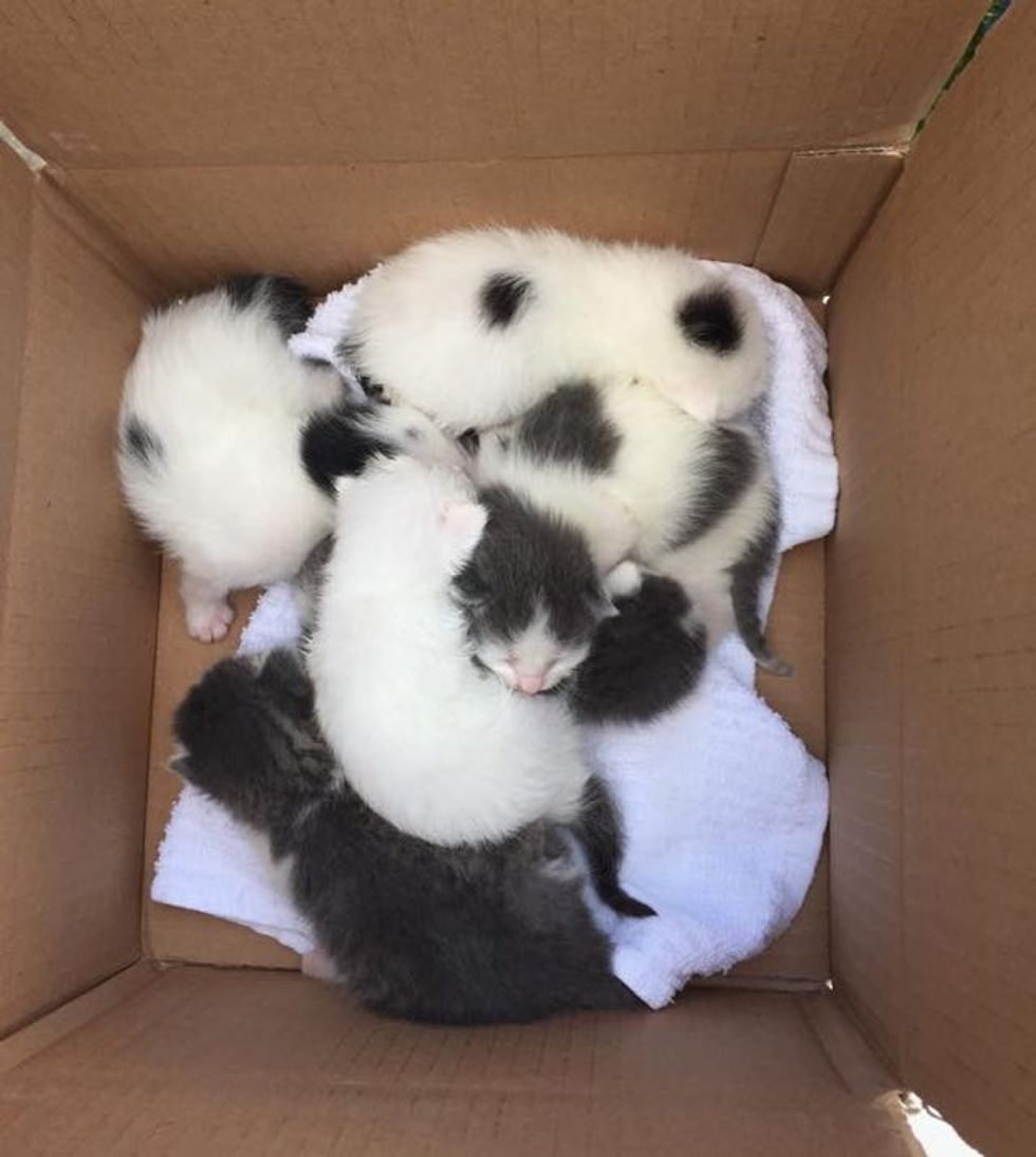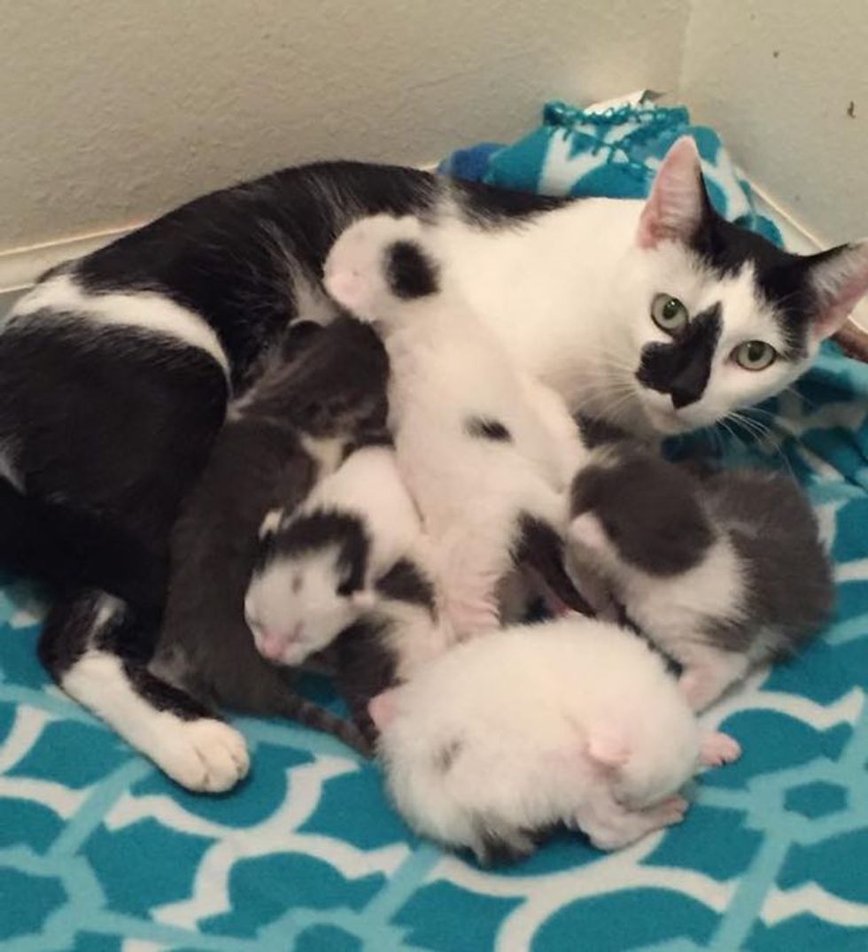 She have given birth to her six babies in a feral outdoor cat shelter. The caretakers did not know she had the litter until she brought two to their porch trying to move them. She left them there behind. They brought them in and began bottle feeding them knowing that there must be more out there."