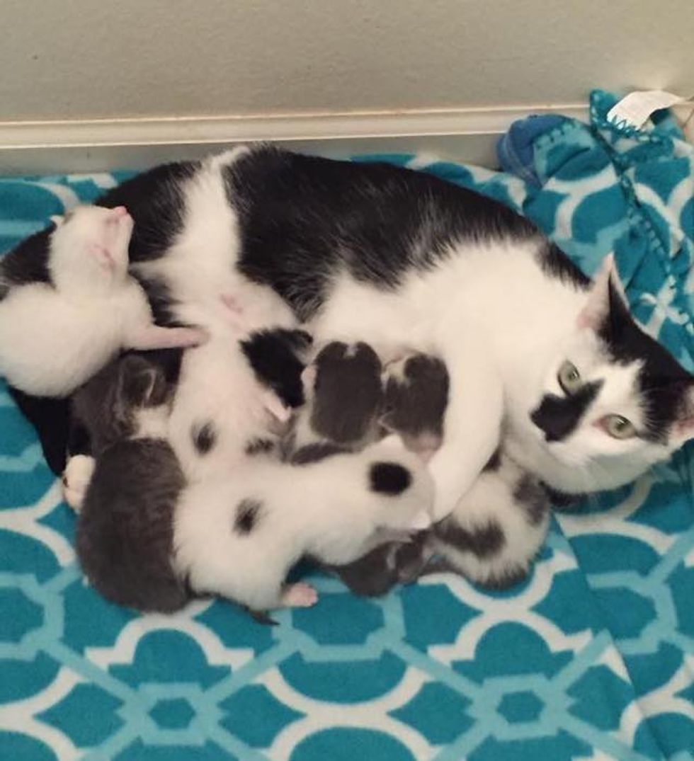 "All six babies have been reunited with their Momma and all is going well. She is so happy to be safe in a nice warm room at the rescue. She will be spayed and all of her babies will be altered before leaving the rescue."