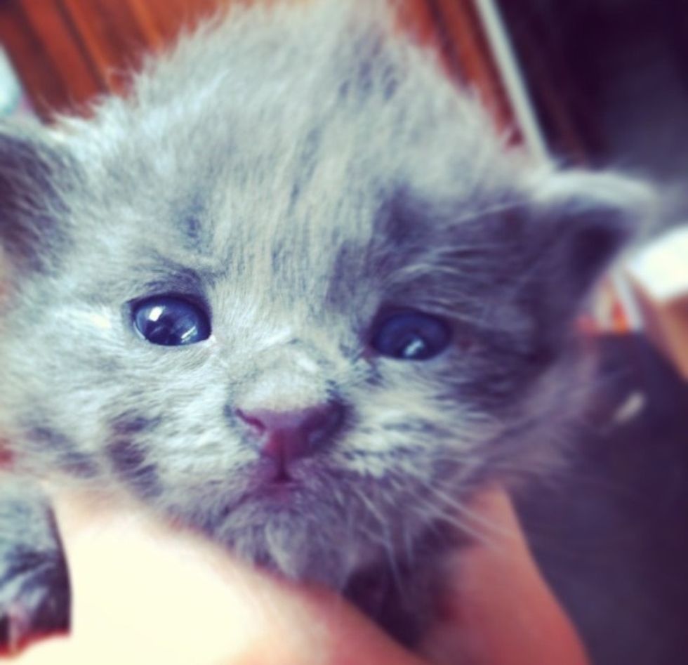 A tiny 2-week-old kitten was left behind at a house by his cat mother who never returned. Monica Villalobos, the owner of the house, decided she would be his new family.