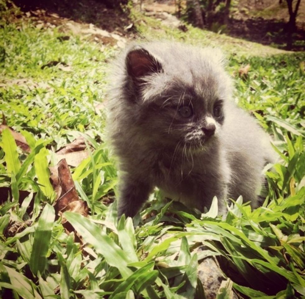 When El Pelusa was around 3 months old, he finally caught up in size and got back on his paws, jumping all over the house and meowing loudly like a healthy kitten would.