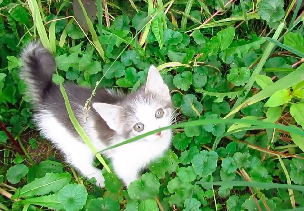 A tiny neighborhood kitten met a man for the first time. He started hissing at him out of fear but a few minutes later, everything changed.