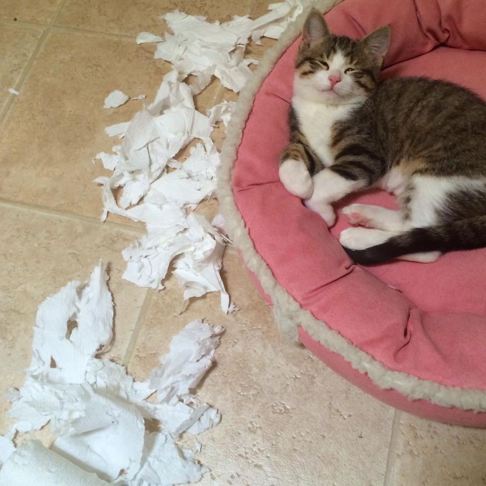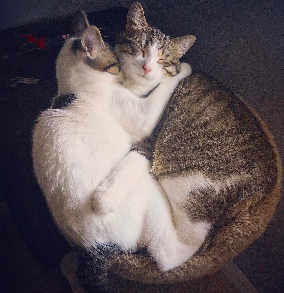 "He is a spazzy, energetic, all boy cat and he showed Mami how to really behave like a cat. She watched him let us pick him up and him sleeping on our laps and saw that its safe to do that. They also love and groom each other all the time - its SO cute!"