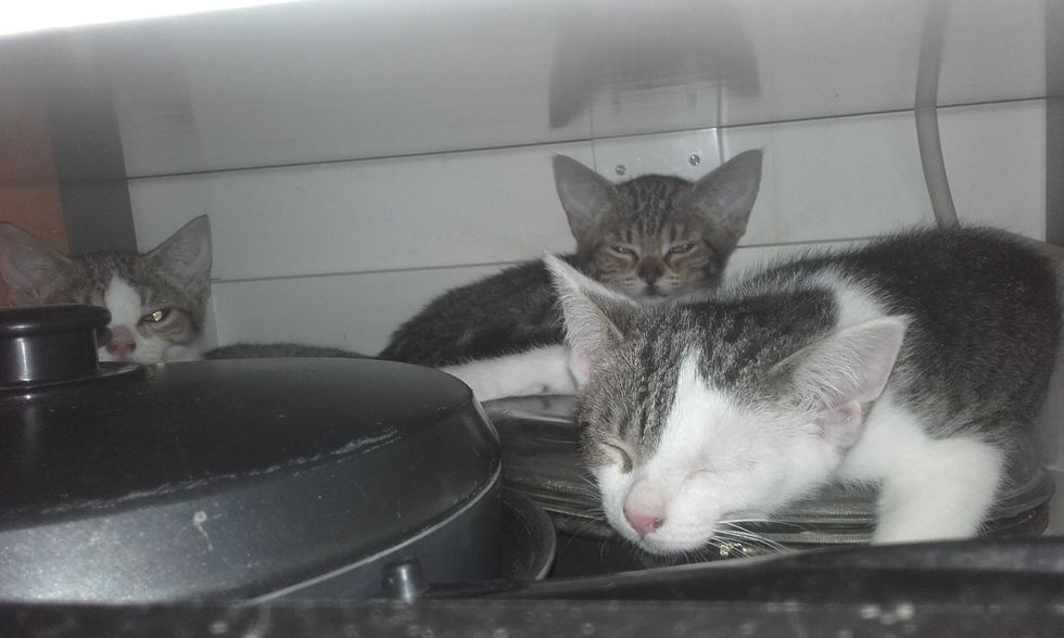 Three feral kittens were terrified of humans on the day they were found, but now they can't get enough of love and cuddles.