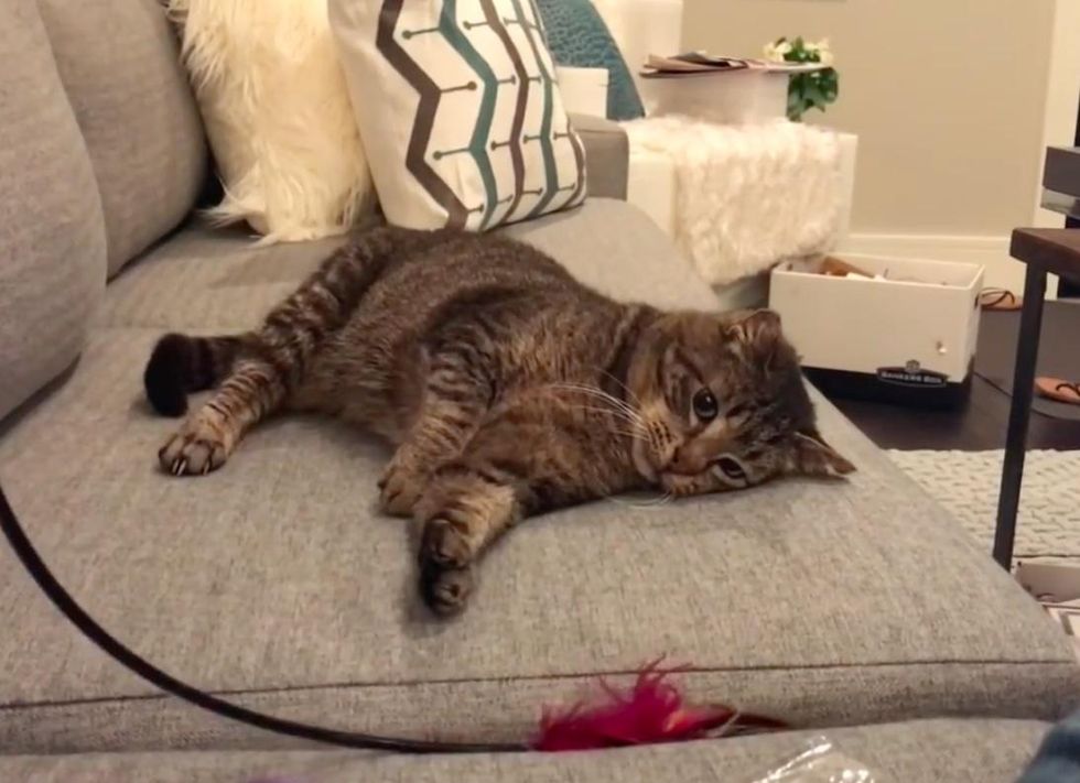 Scrammy the kitten went up to Grandpa and after a few nose kisses and ear cleaning, the kitten wrapped his arms around Mason and they cuddled up together for a nap.