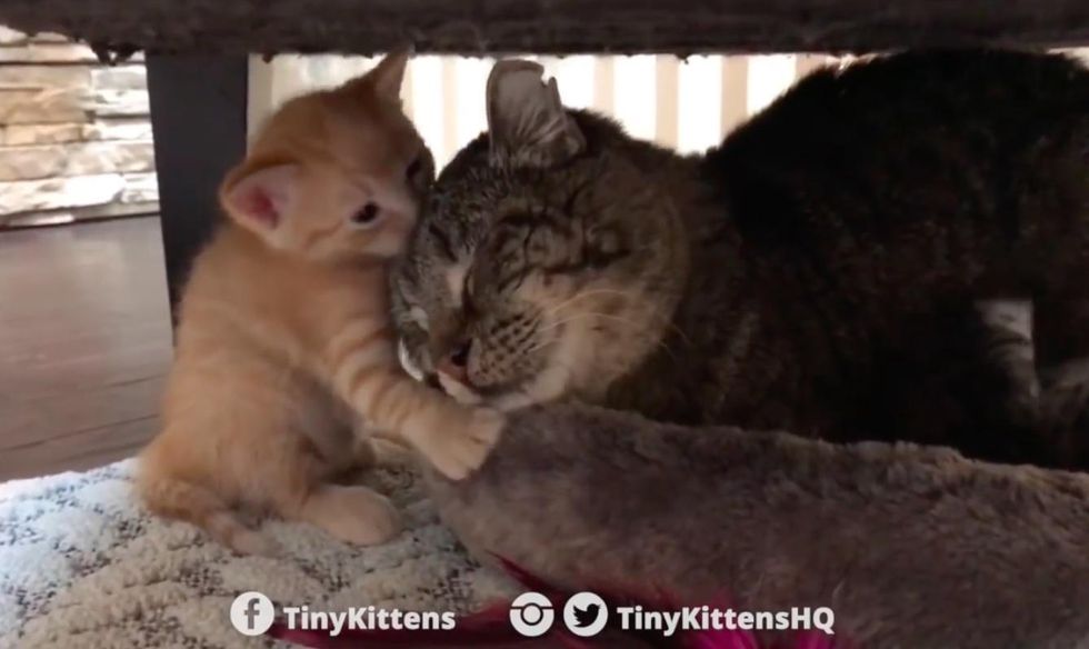 A senior cat who had lived a hard-knock life as a feral, was found in poor shape, but rescuers never gave up on him. When he met a litter of foster kittens, something magical happened…