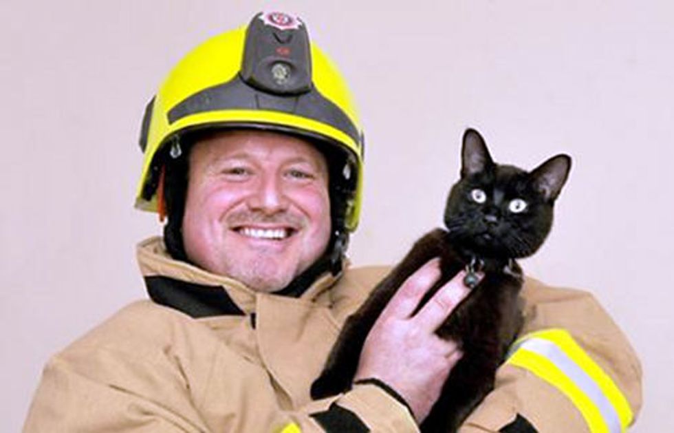 Firefighter Dave Thompson found his lost cat, Salem, when he was called to a garage fire in Rawcliffe, York