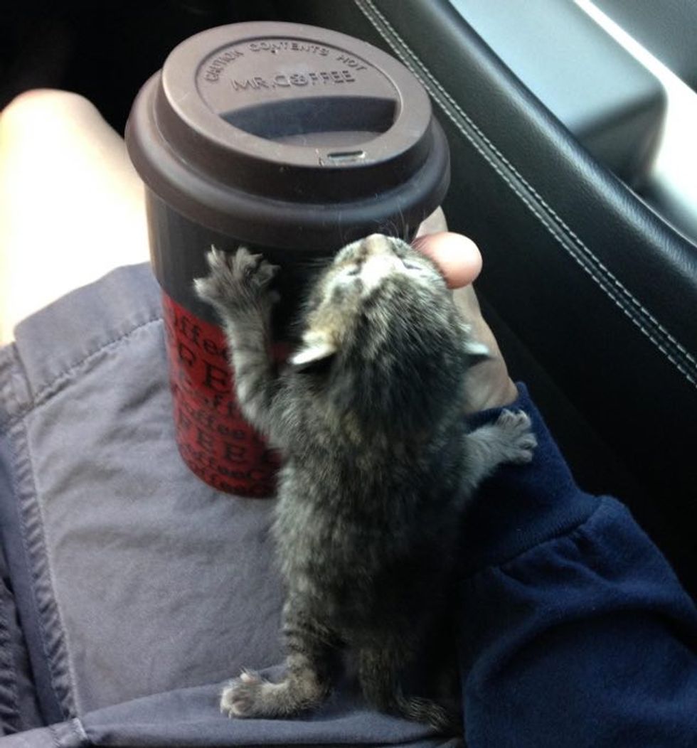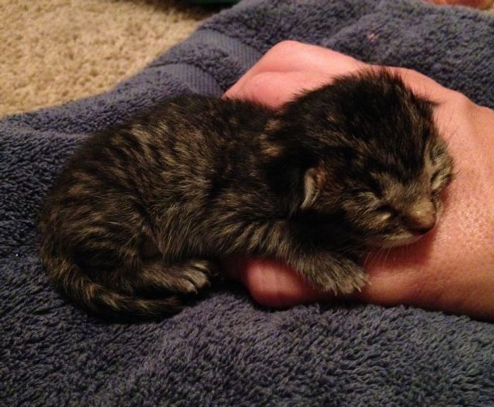 "My hand landed on a little ball of fur with a thin tail, and my first thought was that I had grabbed a rat!" Holcomb told The Dodo. "After reminding myself that I was already holding it, I pulled out this tiny, precious kitten."