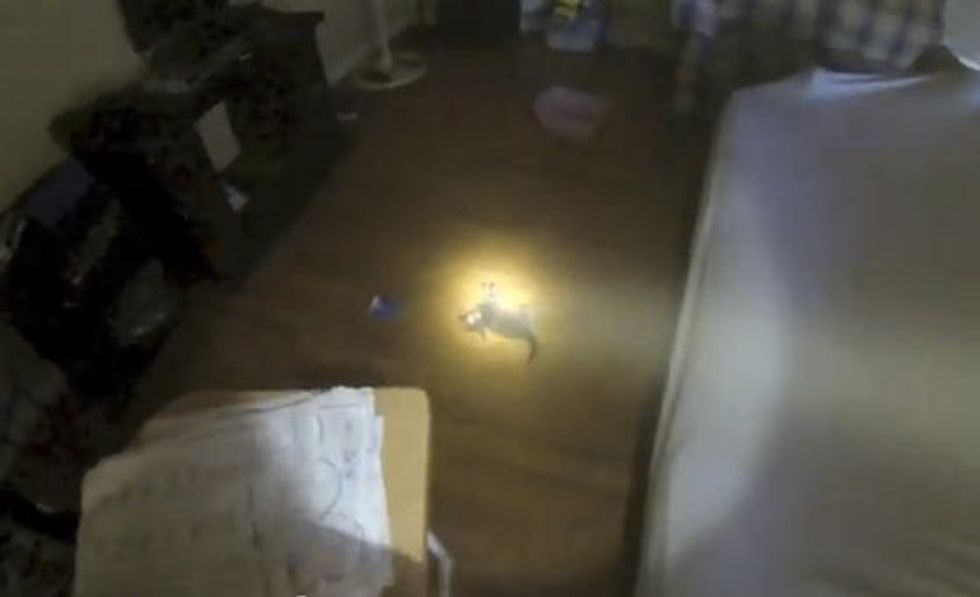 "I looked down, and you can actually see the cat shining in the spotlight of my flashlight, and I looked back, and that's when I saw the cat and grabbed him," said Firefighter Cory Kalanick.
