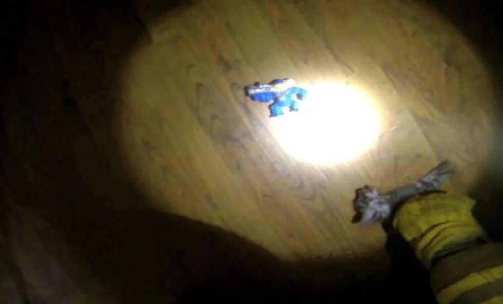 Firefighters spotted a tiny kitten on the floor of a burning house