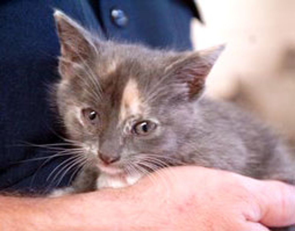 According to Redding.com, a man was doing some work outside his parents' home and kept hearing cries of a kitten from a pipe, so he took it down and brought it to the fire station, hoping they would be able to free the little kitty.