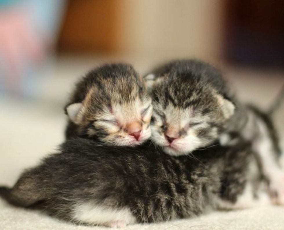 One of the first things that kittens learn to do after they were born is to pile up on each other in a cuddly snuggly puddle of love.