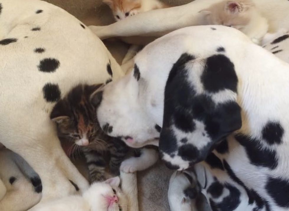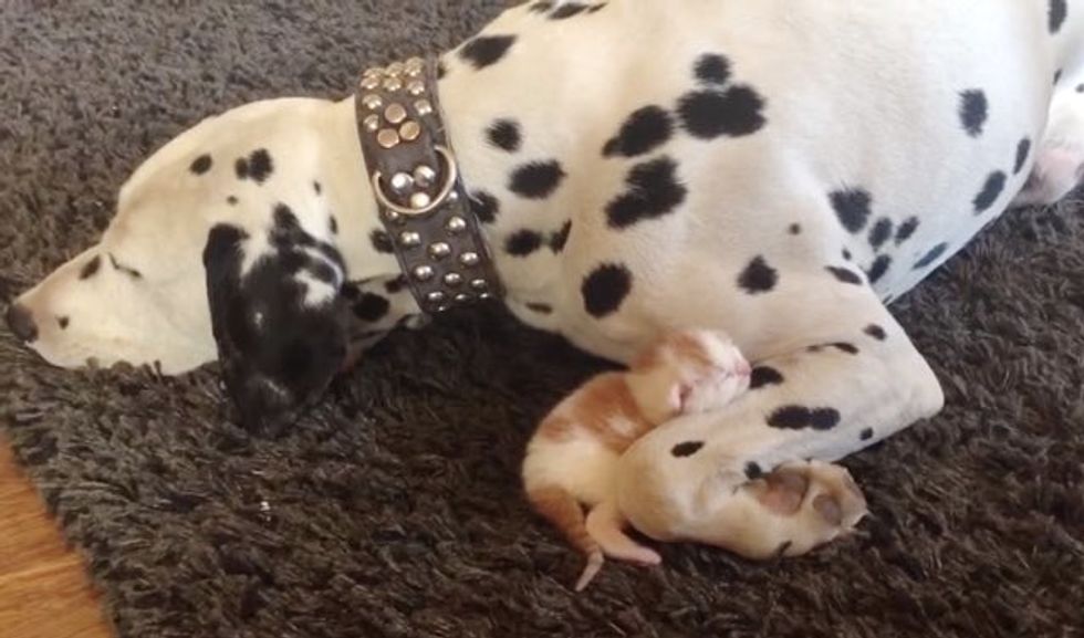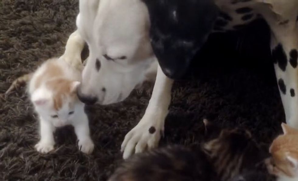Lady the Dalmatian is now a mom to 5 fluffy purr-y babies, and she takes her job very seriously! Watch this cute video: