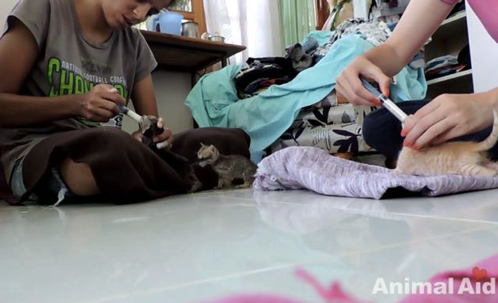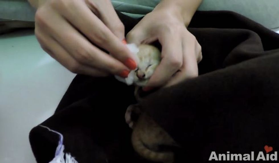 "Owners of a restaurant told us that they heard kittens in an exhaust pipe who had been crying since the last 2 days. Their mom hadn't come back for them. 2 kittens were hypothermic and in critical condition," Animal Aid Unlimited shares the story.