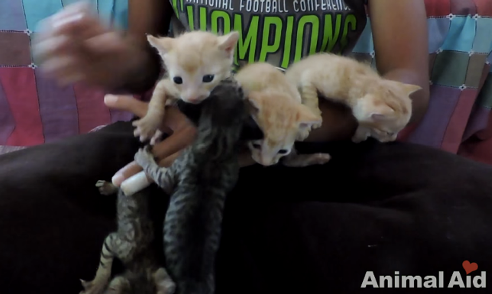 Five tiny orphan kittens found themselves trapped in an exhaust duct at a restaurant. They were desperately crying for help...