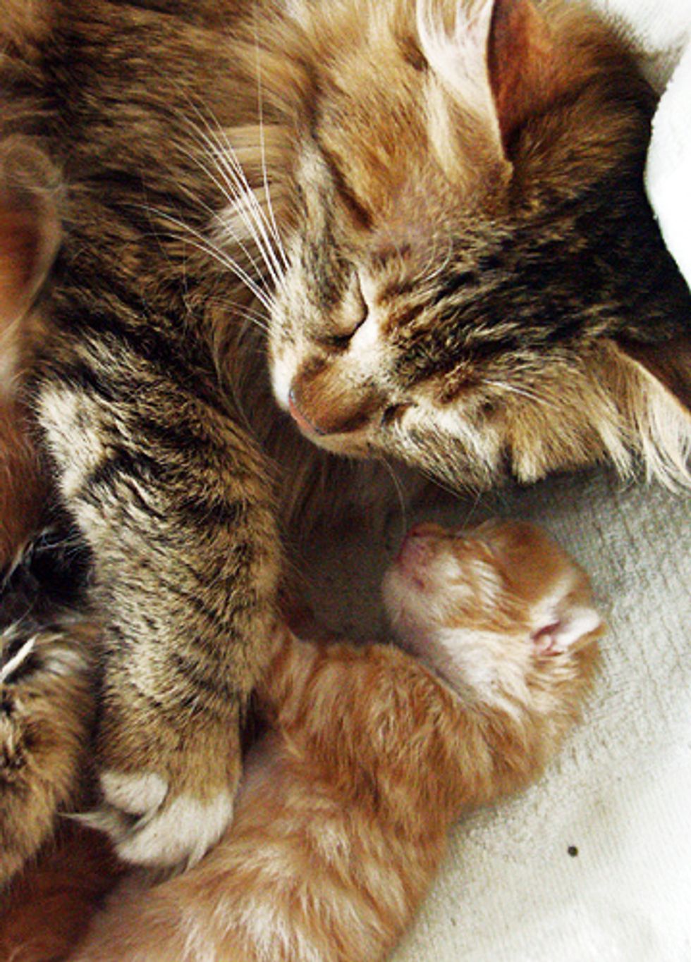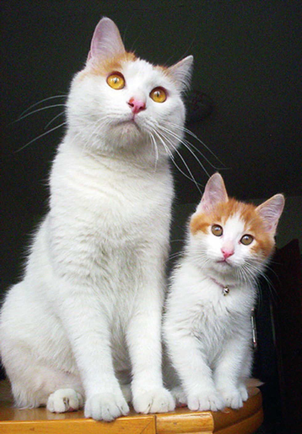 This fluffy family was adopted by Vera, an animal rescuer. The father is a short haired white and ginger cat with a pair of gorgeous yellow marble like eyes. The mother is a long haired tabby cat, wearing a layer of beautiful and colorful coat. The two had a litter of kittens. Some resemble the mother, others look exactly like the father.