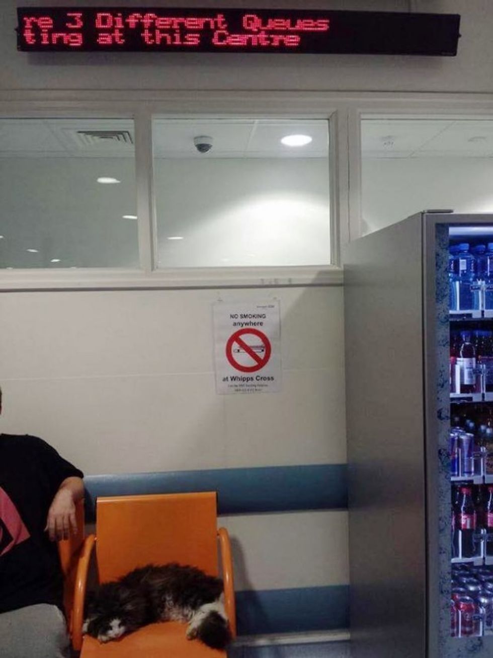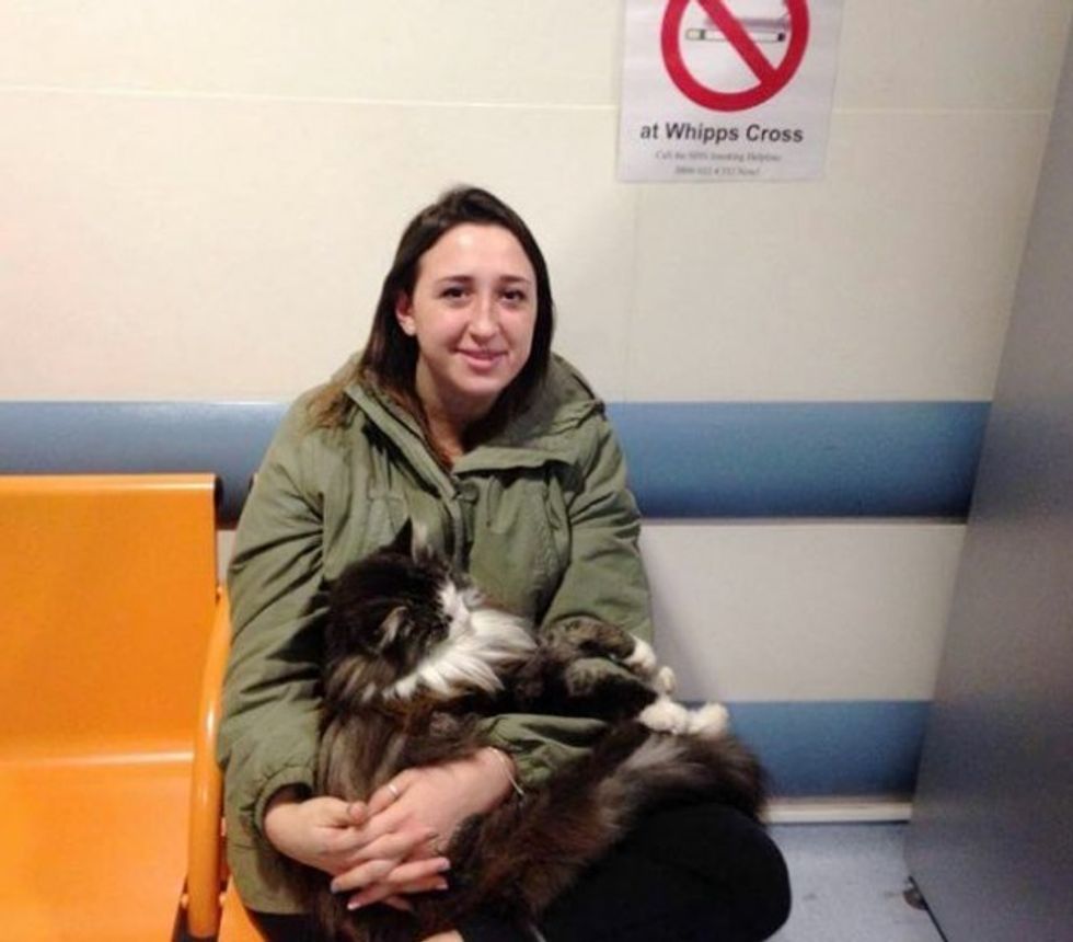 A couple was waiting in the emergency room at the Whipps Cross hospital when a fluffy cat showed up and stayed with them for hours.