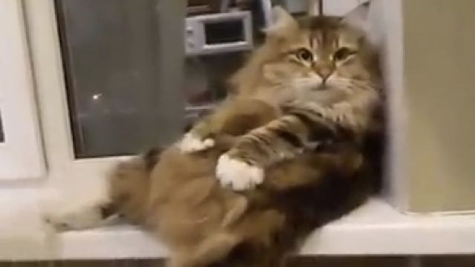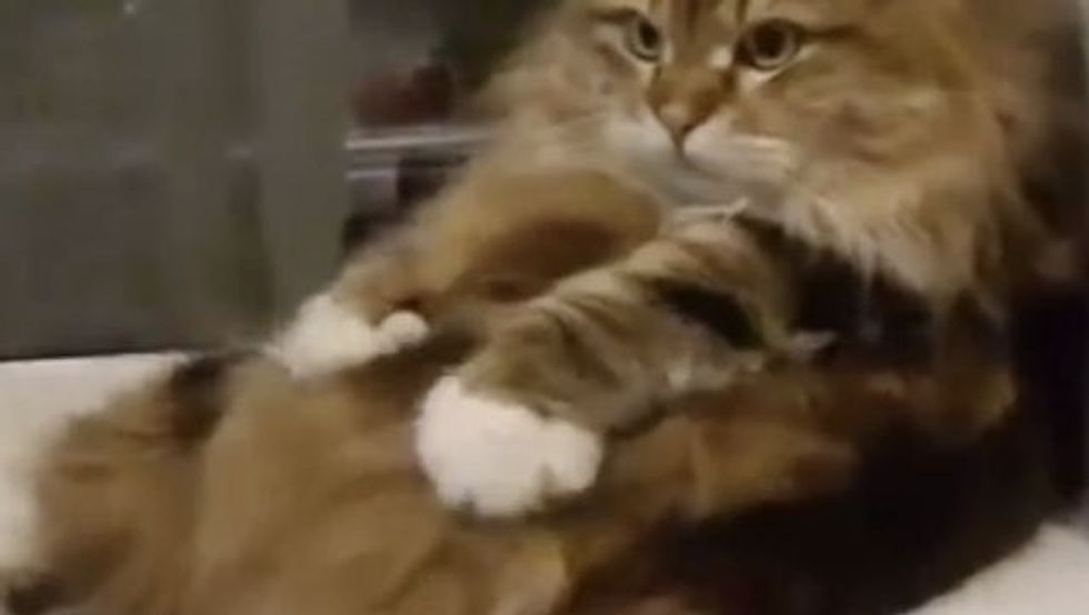 This fluffy boy doesn't need a pillow or a blanket to knead on. He's found the softest place of all - his fluffy belly!