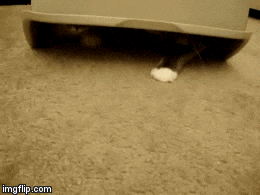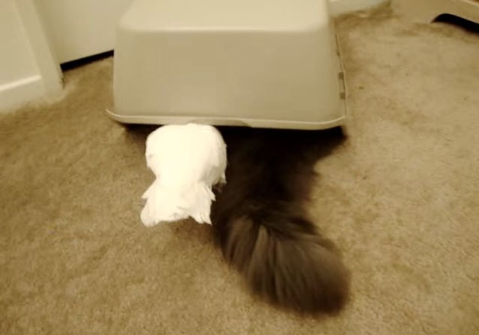 Here's Jackson and Cali hiding under the box for a secret meeting.