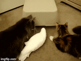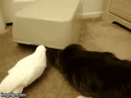 Jackson the Maine Coon cat and Cali the Umbrella Cockatoo are best of friends and partners in crime. Cali looks up to her fluffy feline brother and Jackson always has her back. Sometimes Jackson even tries to teach Cali how to cat.