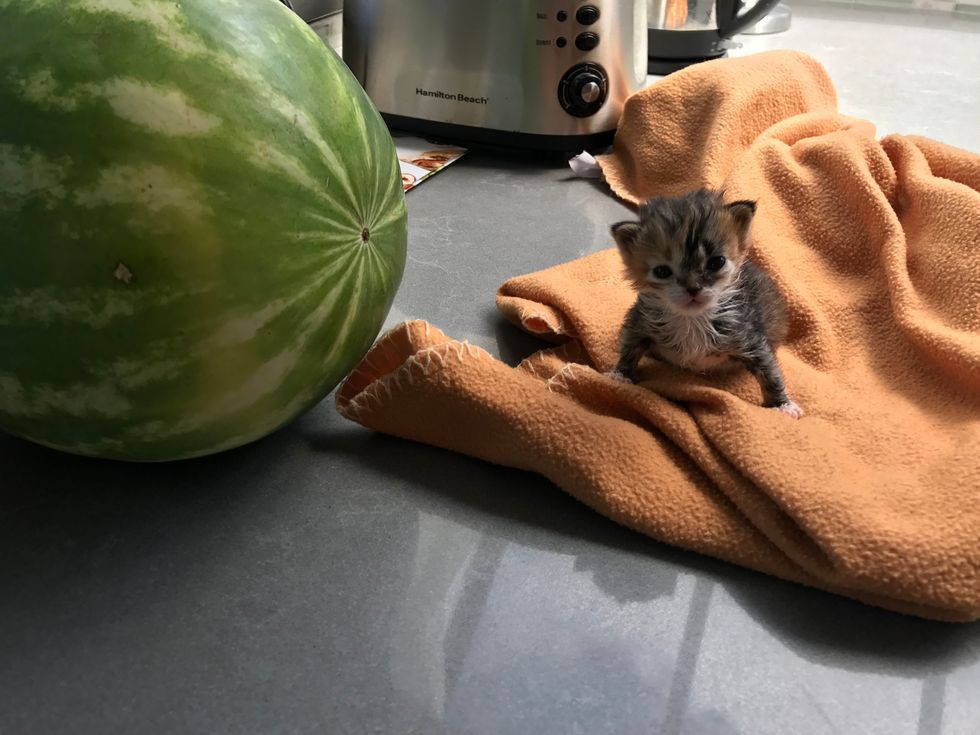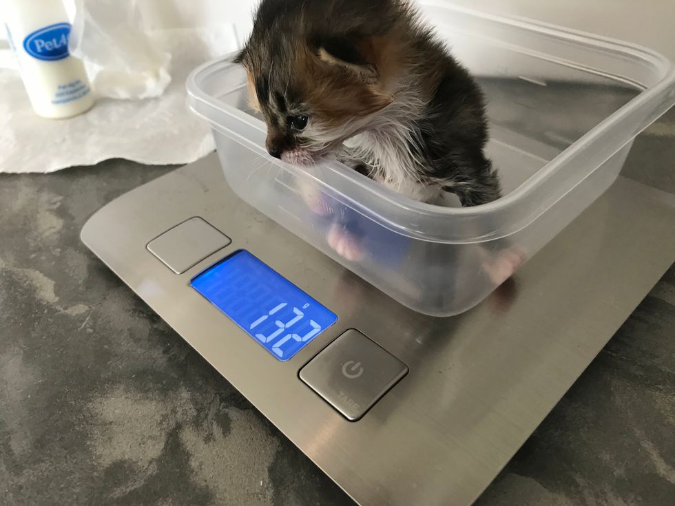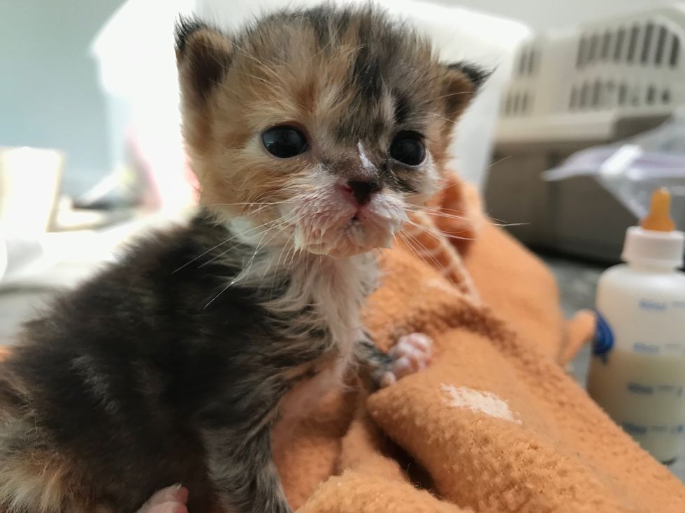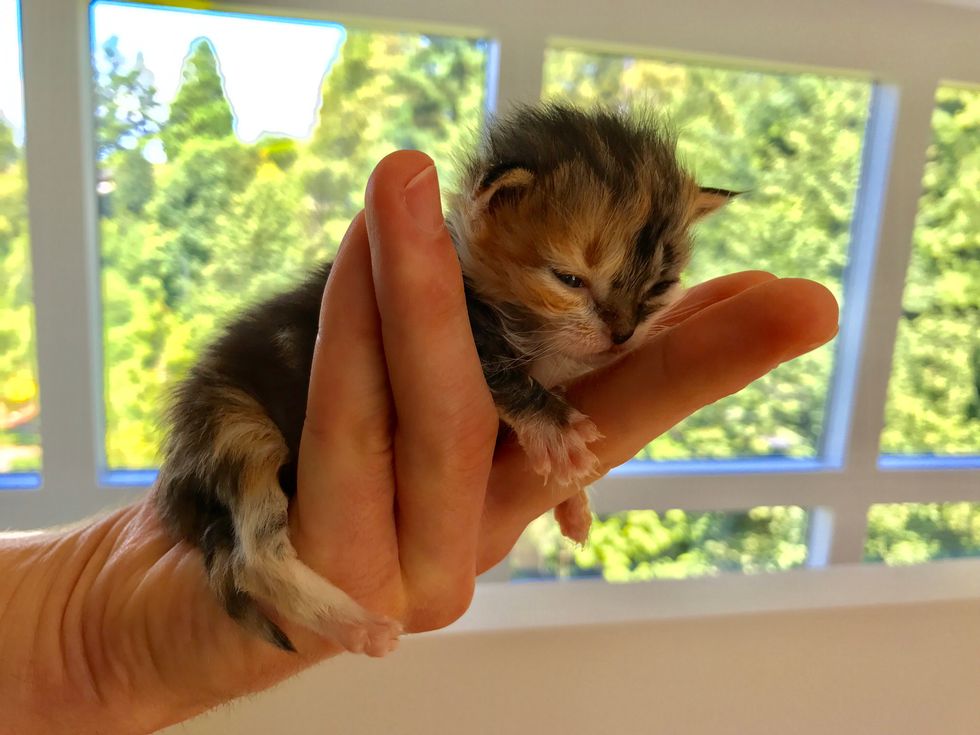 The tiny ball of fur was so happy to have someone to care for her and she discovered how to purr.