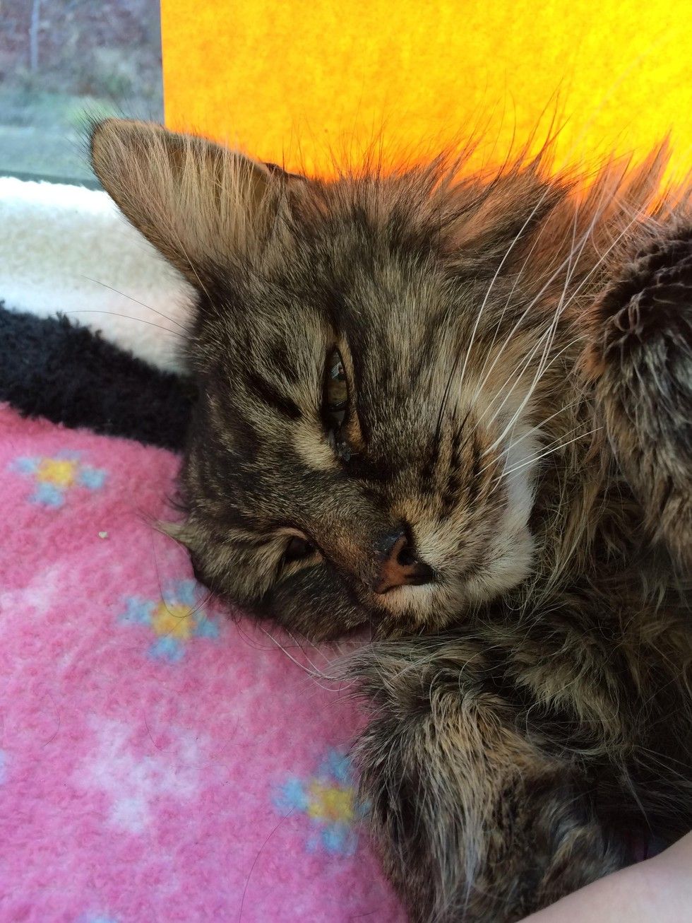 "He was purring up a storm yesterday when I sat with him. I brought a pillow to the window, set it next to him and felt it was too small so I went to the closet to get a bigger one.