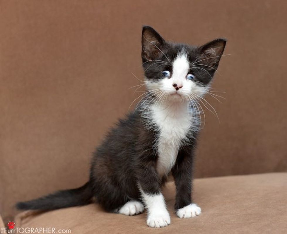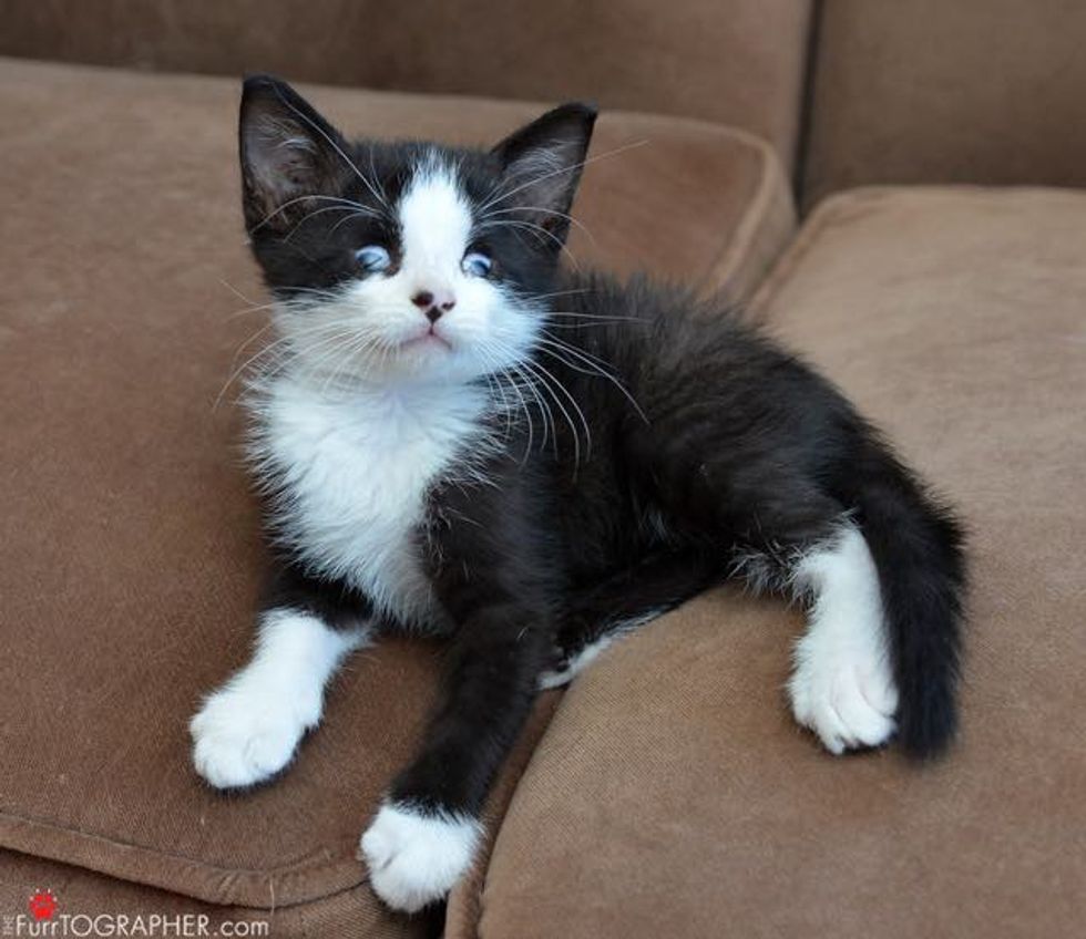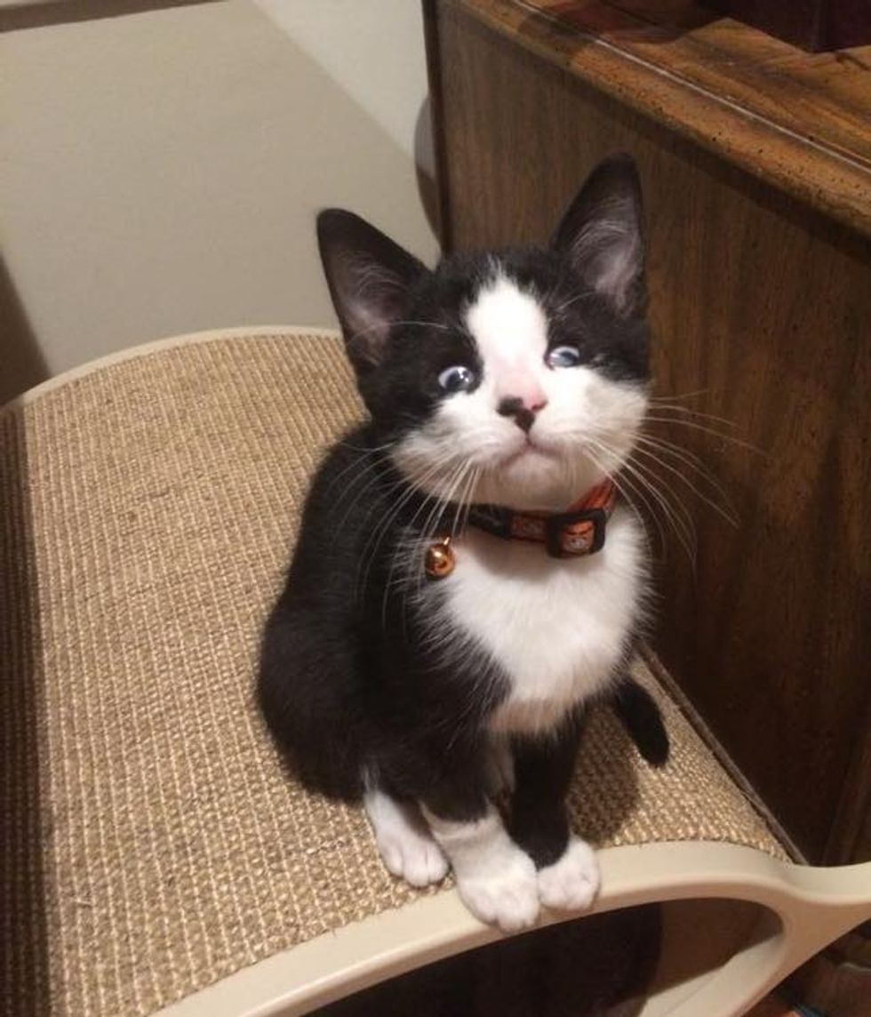 Meet Cooper! He may not have the best vision, but he's simply purrfect! This endearing little tuxedo boy doesn't let anything stop him.