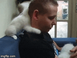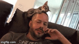 Every day this adorable foster baby gives his dad a kitty hair-cut and he takes it very seriously. To get the hair-cut done properly, you would need a few love nibbles and lots of licking from a purrfesional kitten groomer.