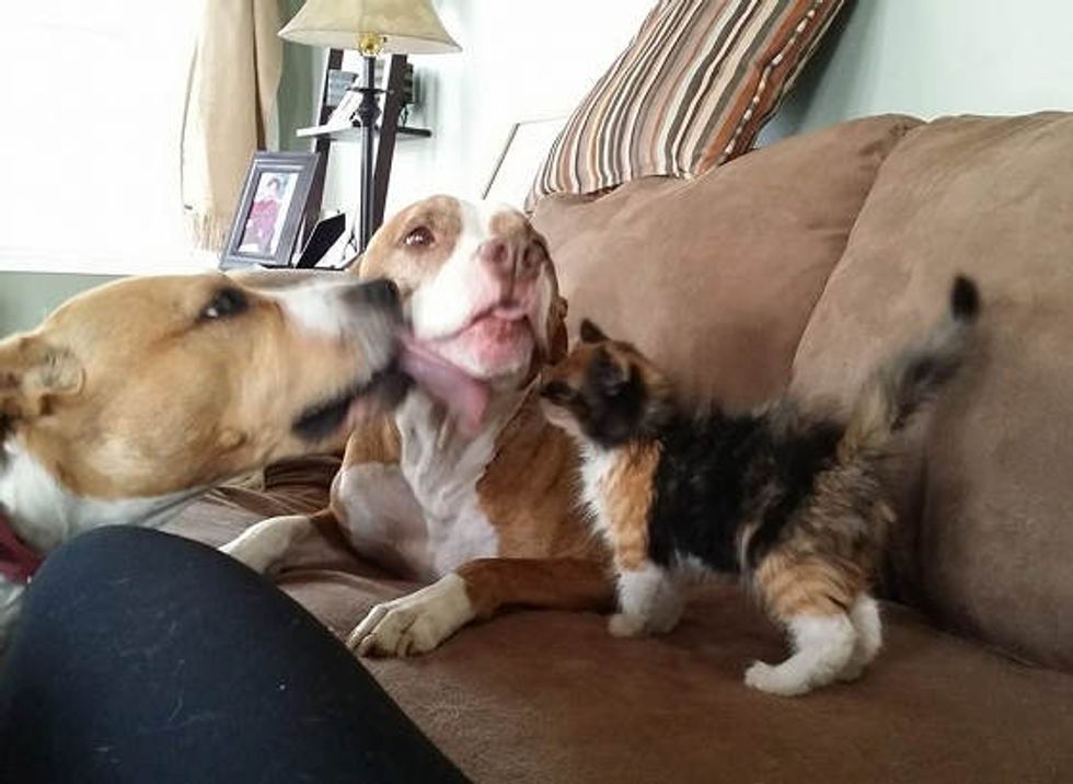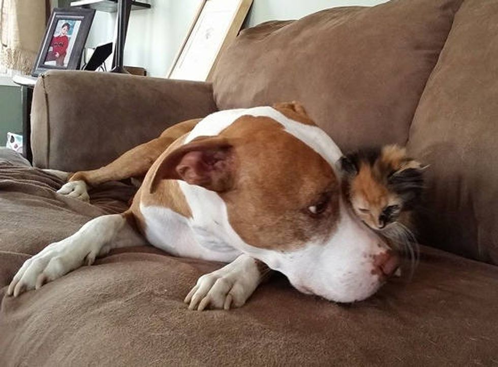 When Matilda the rescue kitten came to her foster home, she became instantly obsessed with their rescue pit bulls. "She tries to nurse off Spike which is funny since he’s our only male dog," said Lisa Revella Morabito of BARCS, Baltimore animal shelter. (Huffington Post)