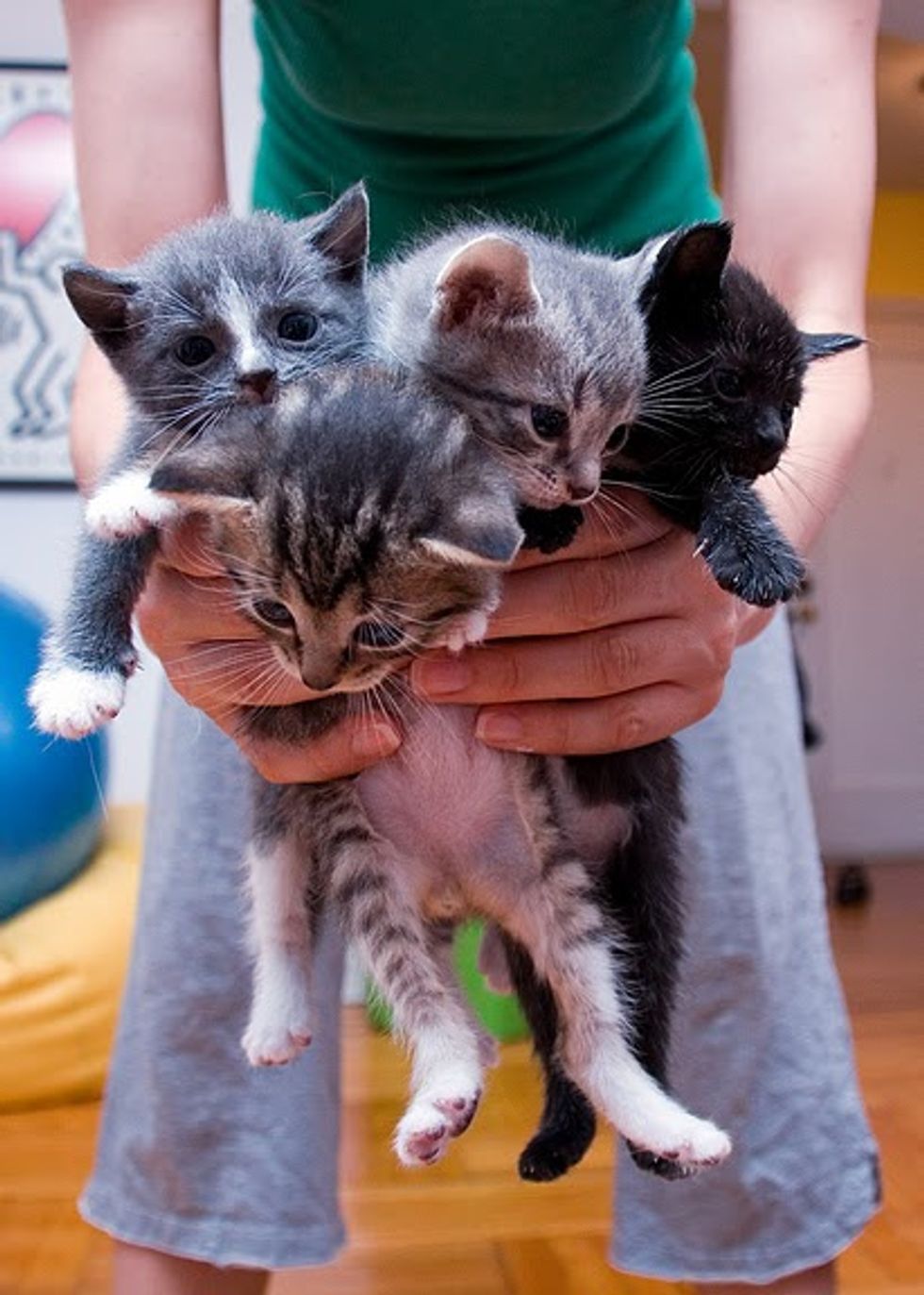 This boutique of kittens was our second batch, they were born in an old video game console and were trapped with their feral mom so they had the best of both worlds -- they got to stay with their mom, but we hand reared them and now they are great pets.