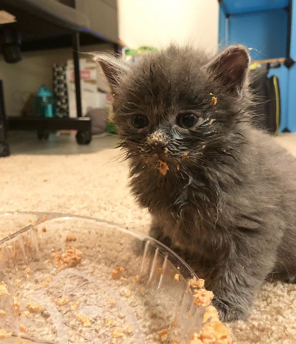 During the first week, the kittens were messy eaters and needed help cleaning afterwards.