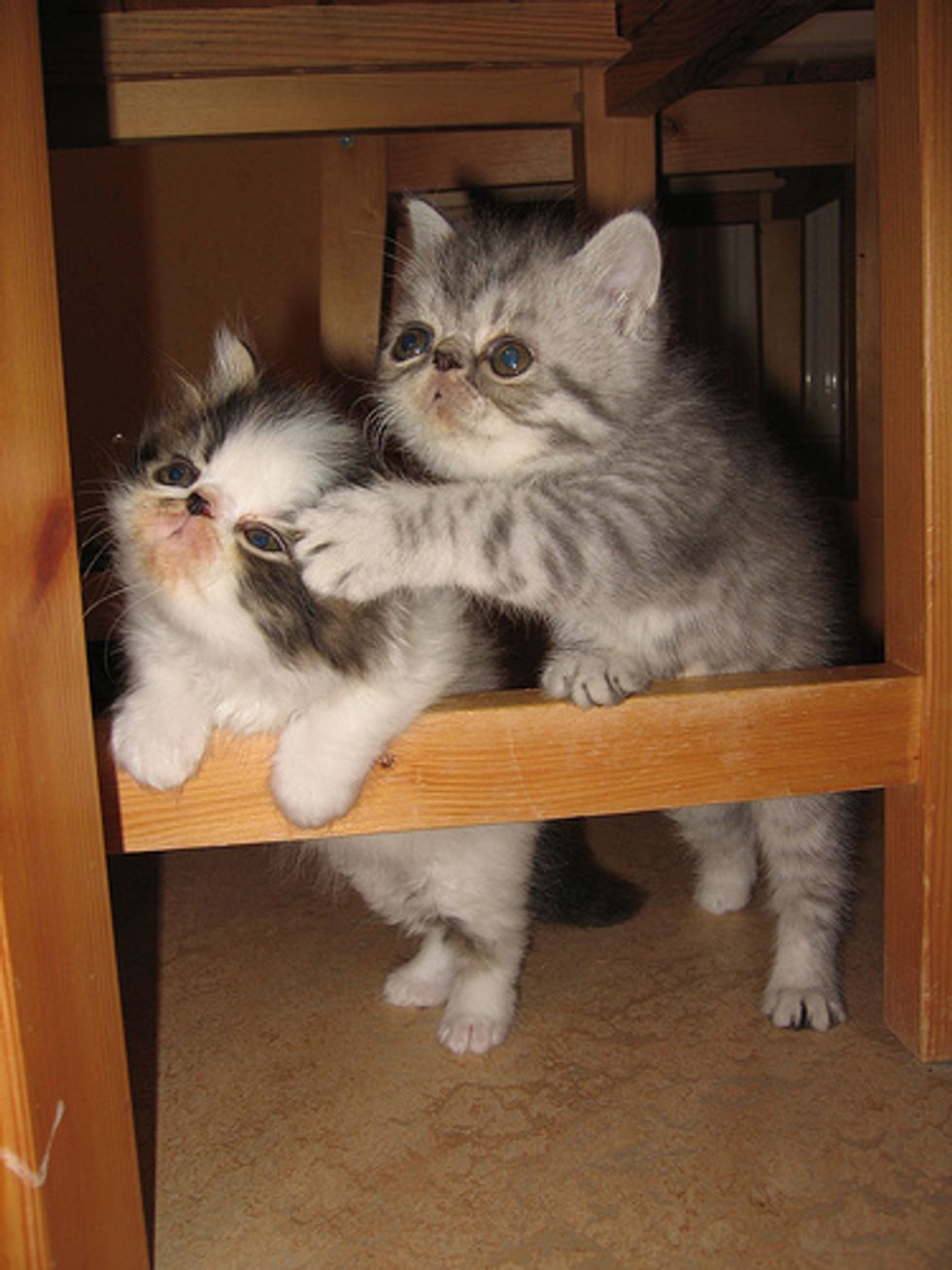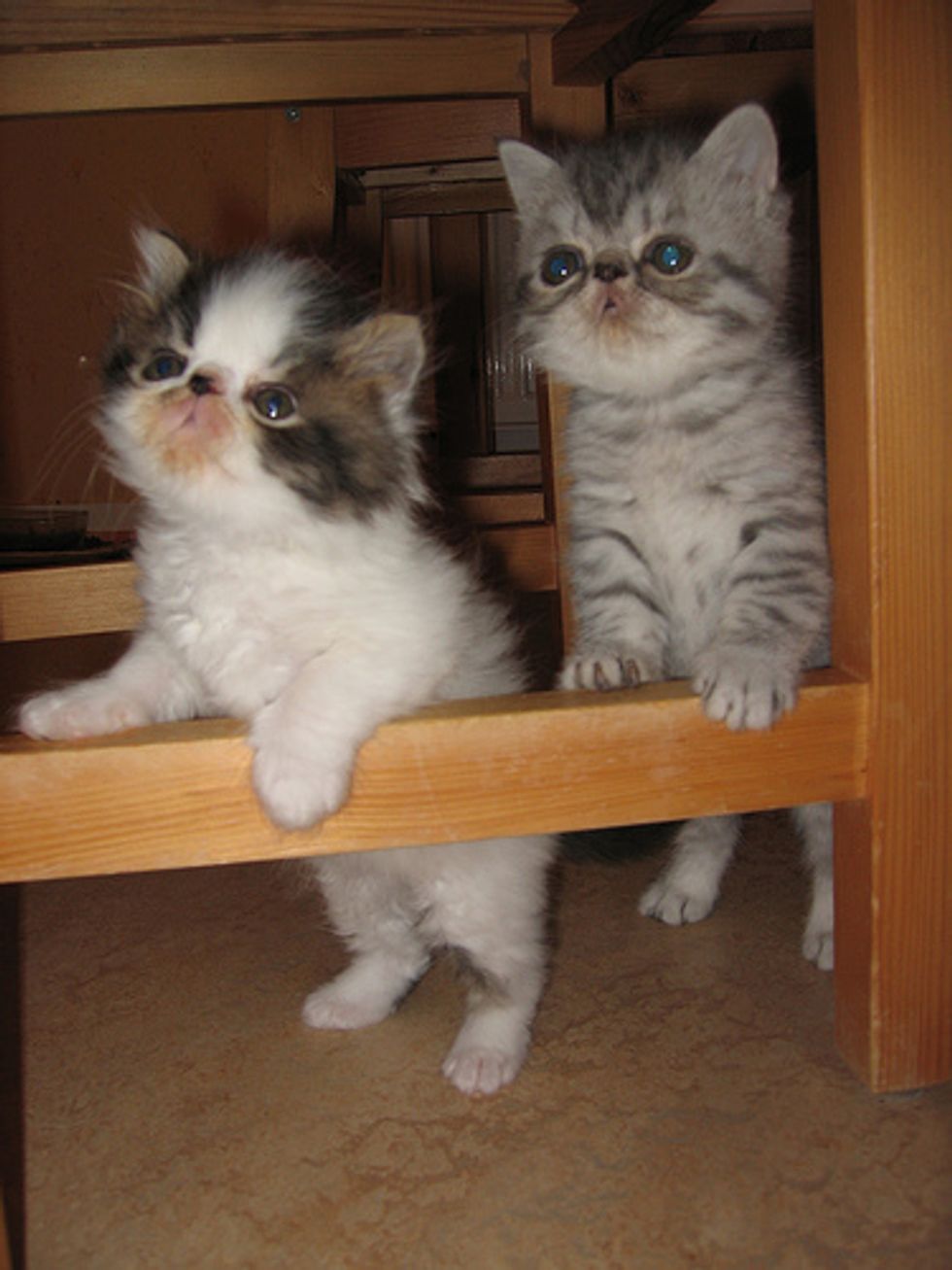 Anders Viklund from Haninge, Sweden, has four beautiful Exotic (short-haired Persian) kittens. They are named Daisy, Doris, Dallas & Dolores. Dallas is the one with the lovely brown/black coat. In the picture above, they are having a lovely day hanging outside the house.