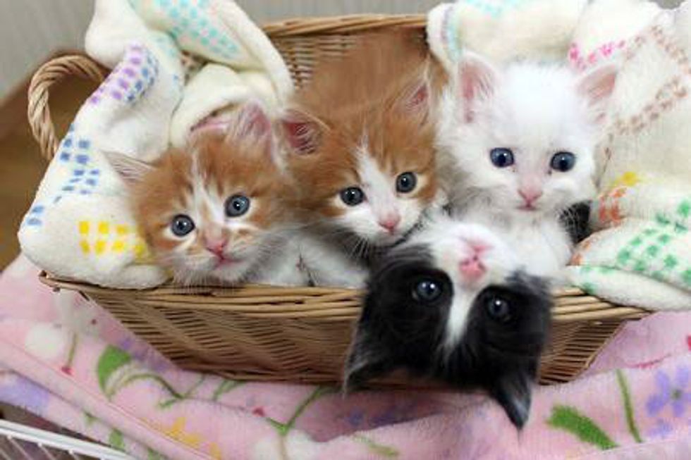 It was kitten season, four little itty bitty babies were found by a Japanese rescue team a year ago. Chibi Umeharu brought them into her foster home and bottle fed each of them round the clock. She kept track of their weight and gave them their needed first bath.