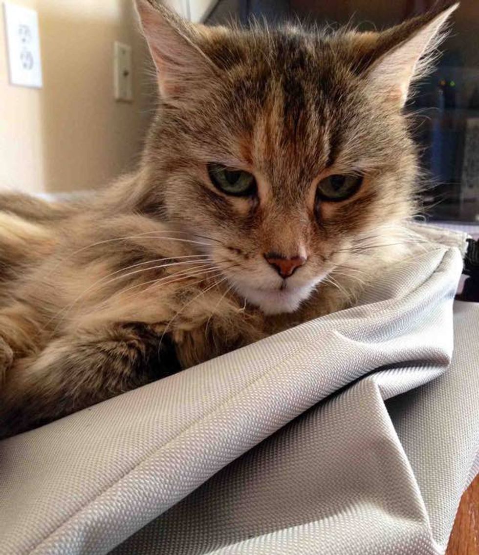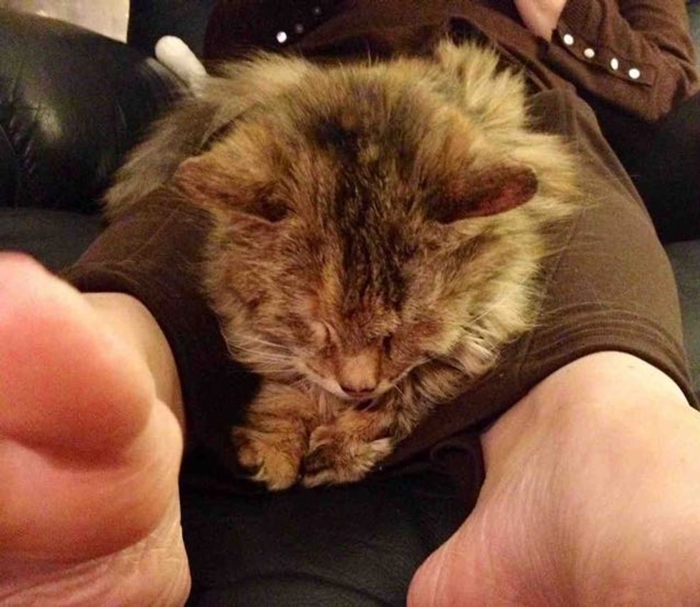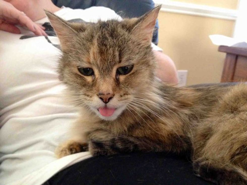"Frances does not groom herself properly, no. She gets knots in the fur on her belly often and I have to cut them out. She is on medication for her thyroid, but the vet says she is in great health," he added.